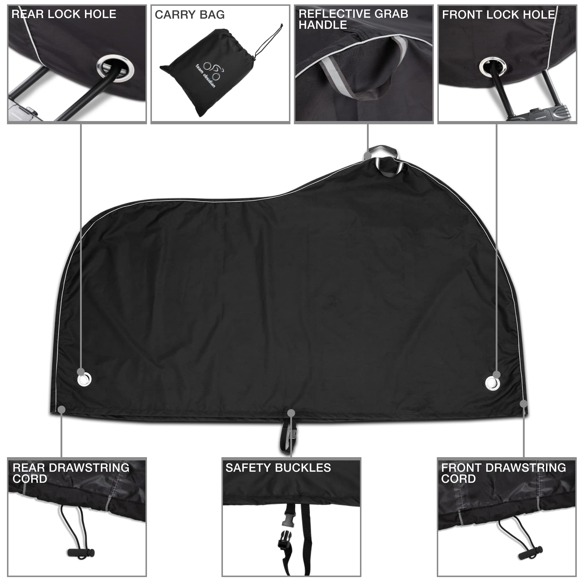 ✅ Łatwe Użytkowanie –: Łatwe Użytkowanie – Wystarczy wsunąć ją na rower i pociągnąć za linkę u podstawy z przodu i z tyłu. Dodatkowe zabezpieczenie dzięki otworom na zamek z przodu i z tyłu oraz łatwo zauważalne dzięki odblaskowym liniom po obu stronach. Można go łatwo zdjąć za pomocą górnych uchwytów