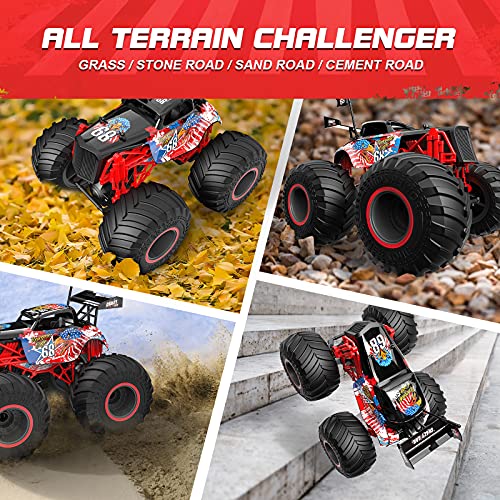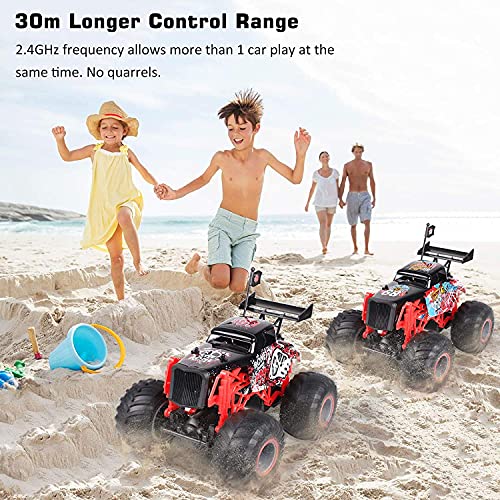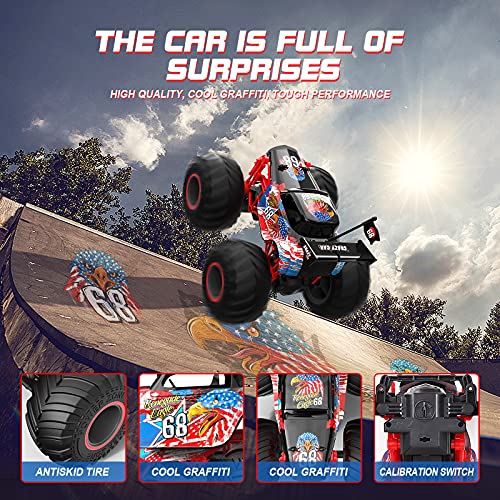 Tech rc Monstertruck zdalnie sterowany samochód Off-Road 1:14 Truck 2 to doskonały wybór dla miłośników zdalnie sterowanych samochodów. Ten imponujący model w skali 1/14 jest nie tylko realistyczny, ale także imponujący pod względem wyglądu. Jego unikalna czarno-czerwona kolorystyka i personalizowane graffiti sprawiają, że jest on prawdziwym centrum uwagi na każdym terenie.