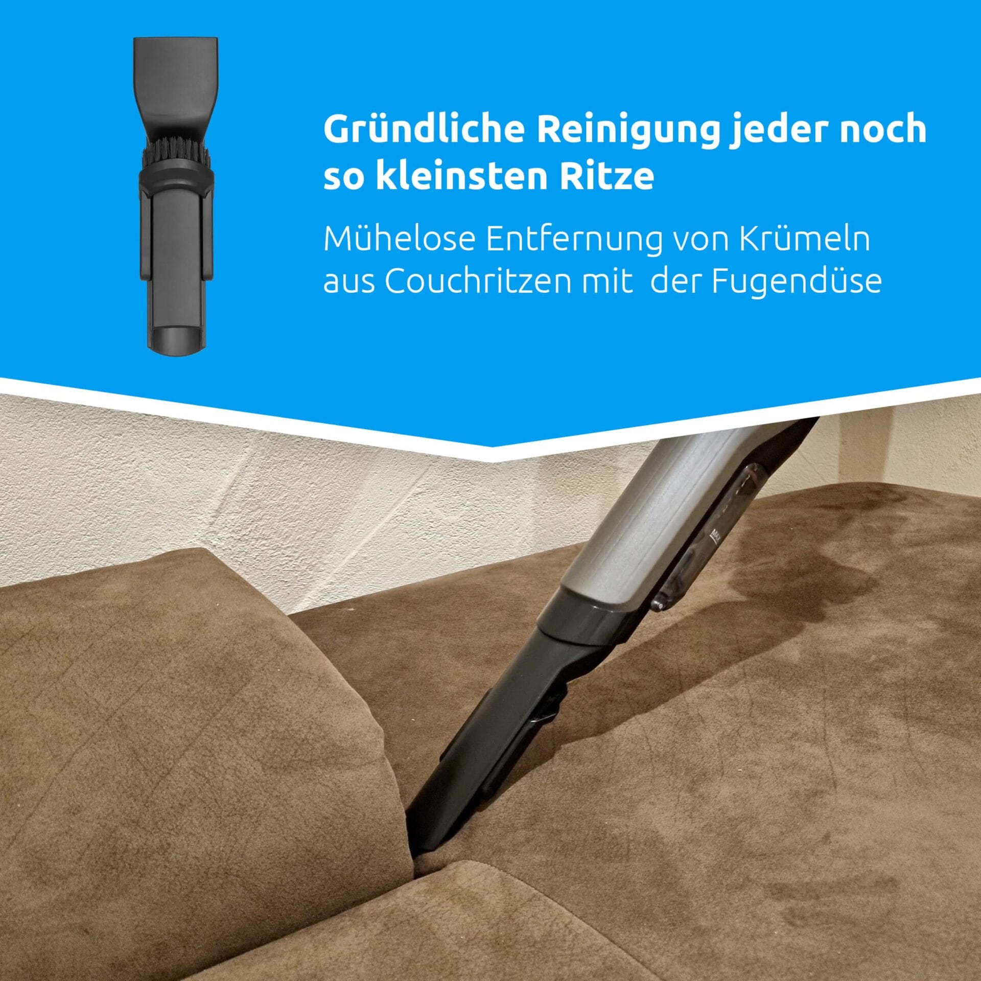 Odkurzacz ręczny TechniSat TECHNIMAX AS Mini jest wyposażony w bogaty zestaw akcesoriów. W skład zestawu wchodzi dysza 2w1 do czyszczenia trudno dostępnych miejsc, takich jak kąty i szczeliny, z możliwością podłączenia szczotkowego nakładki, która chroni delikatne powierzchnie blatów i stołów. Szeroka dysza jest przeznaczona do usuwania większych zanieczyszczeń z tapicerki samochodowej i mebli.