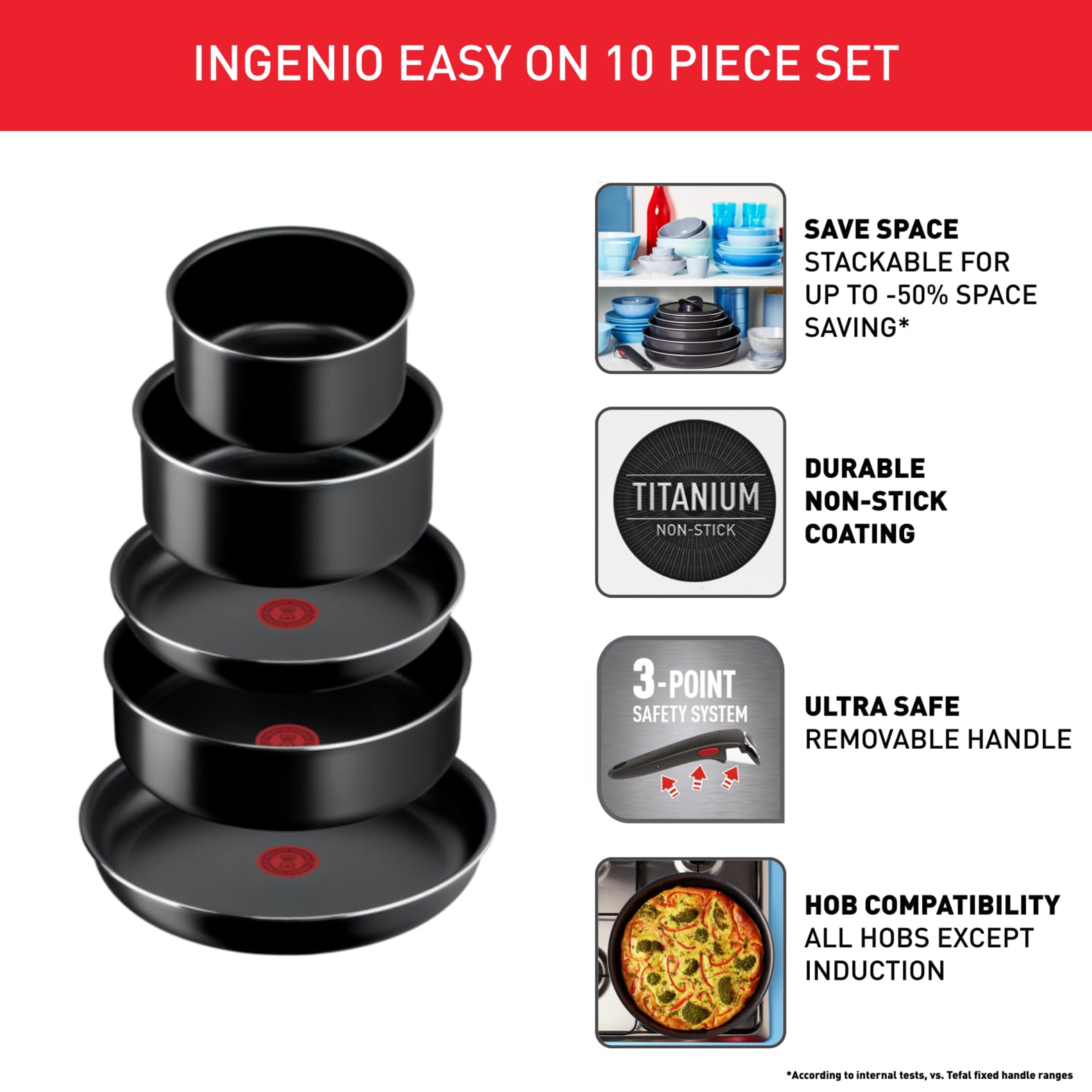 Tefal Ingenio Easy On Zestaw Garnków i Patelni 10 szt. Czarny – Idealny do Kuchni