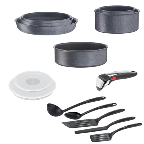 TEFAL L7669902 Zestaw INGENIO Natural On, Patelnie 22/24/28 cm + Garnki 16/20 cm + Saute 24 cm + Pokrywki 16/20 cm + 5 akcesoriów + rączka, powłoka mineralia+, do wszystkich kuchenek, szary