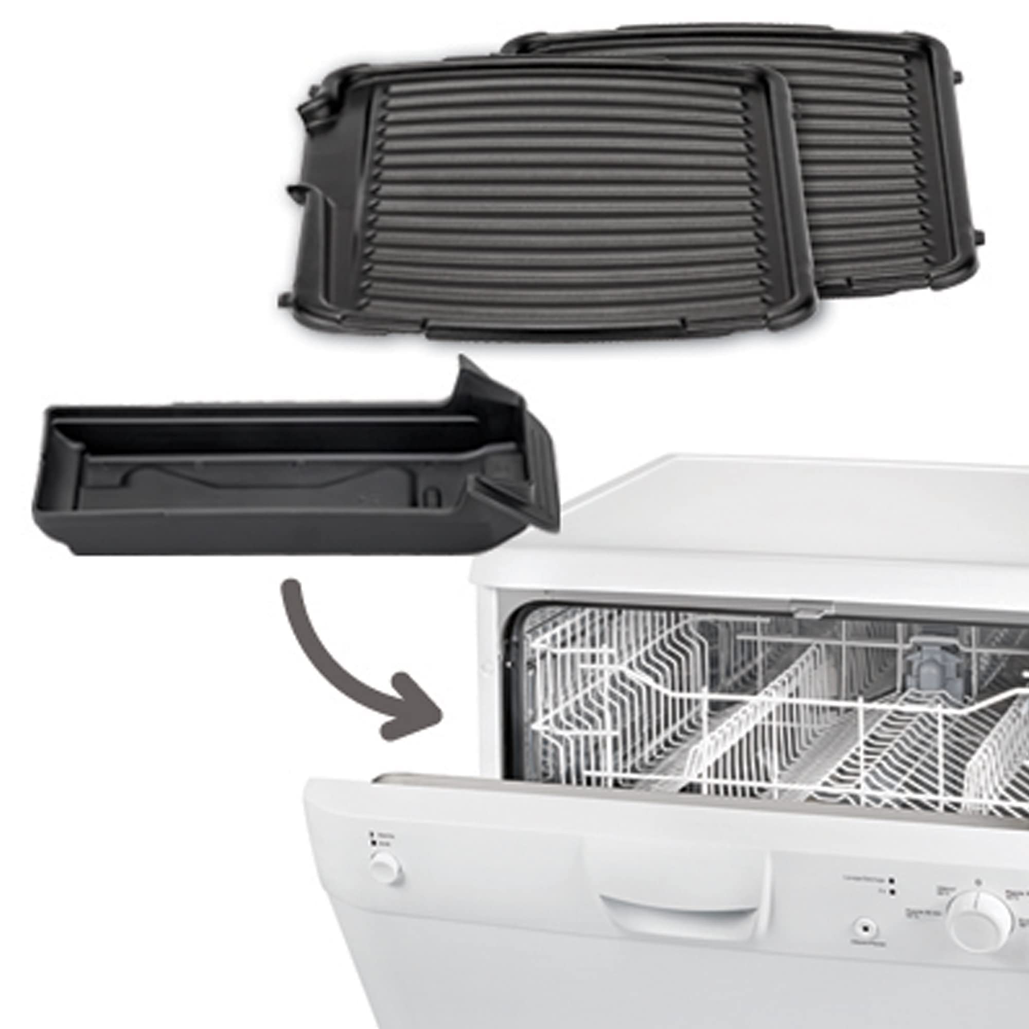 – Łatwe czyszczenie: Powierzchnia grillowa oraz tacka na tłuszcz są zdejmowalne i można je myć w zmywarce. Dzięki powłoce nieprzywierającej, nie ma potrzeby uciążliwego szorowania.
