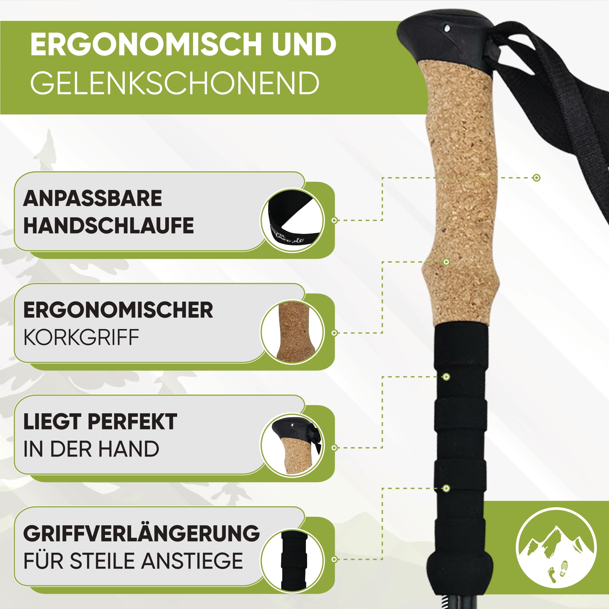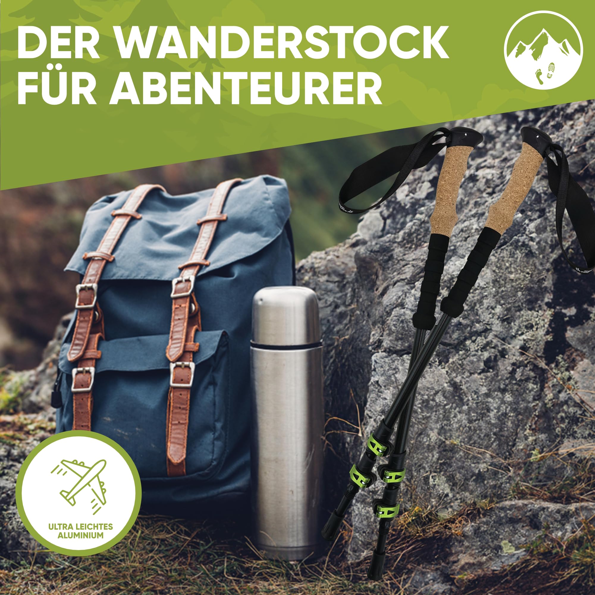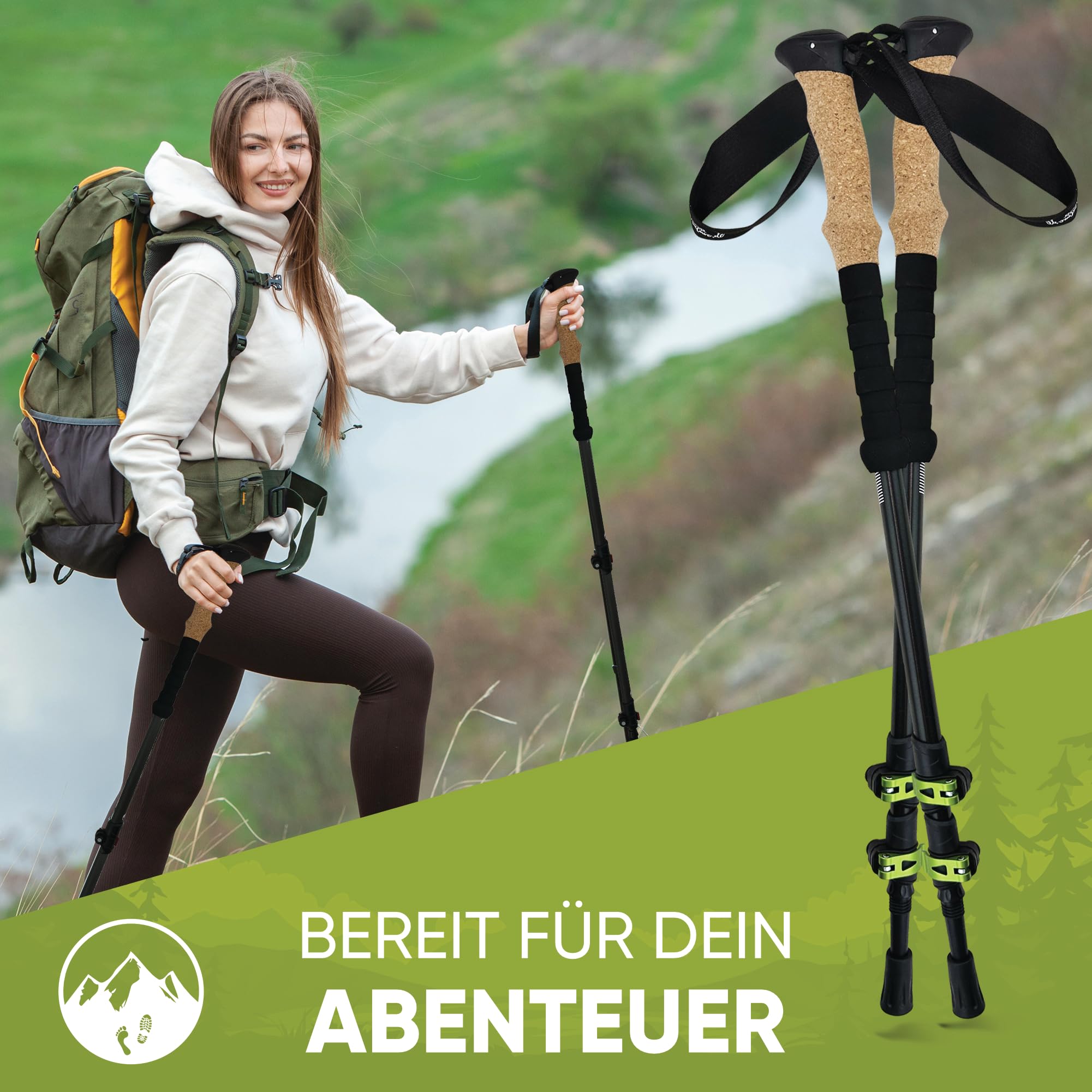 Teleskopowe kijki trekkingowe aluminiowe z uchwytem korkowym – lekkie kijki do nordic walkingu, jazdy na nartach i wędrówek