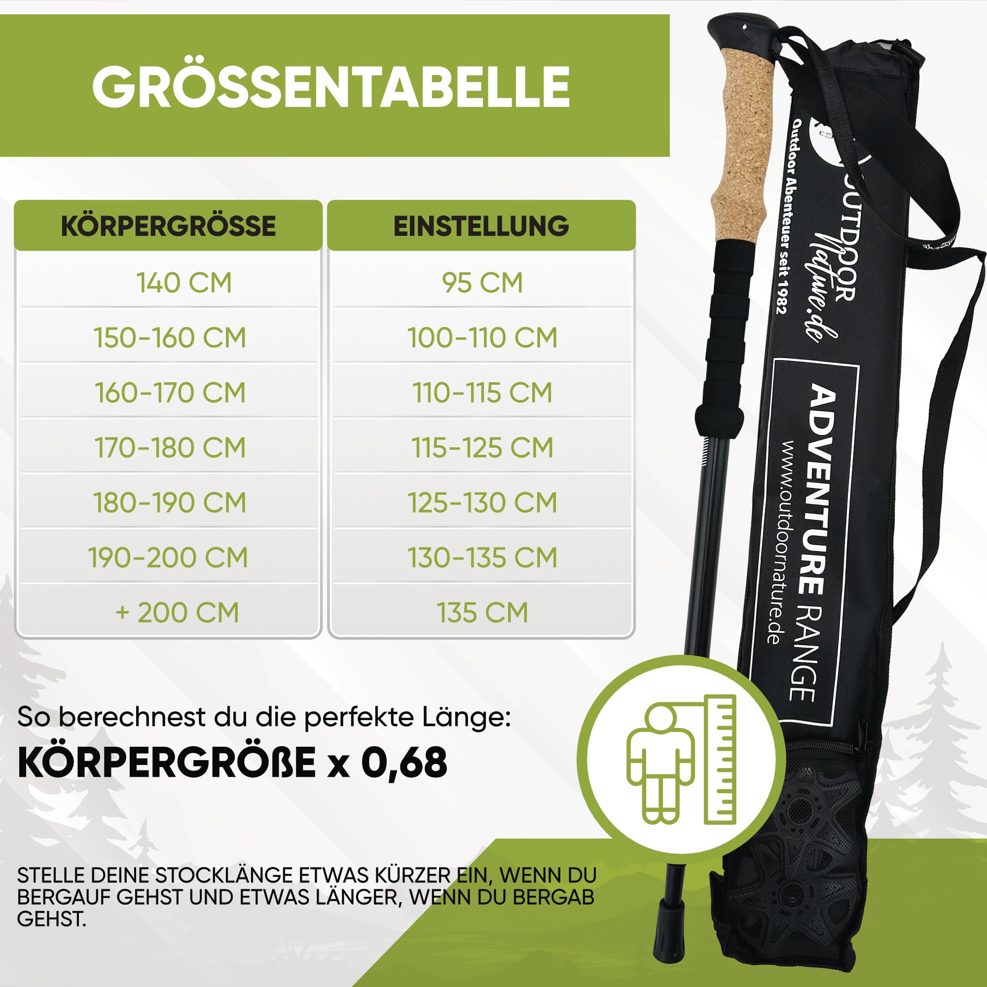 Kijki teleskopowe pozwalają na łatwe regulowanie długości, co sprawia, że są uniwersalne i dostosowane do indywidualnych potrzeb użytkownika. Uchwyt korkowy zapewnia komfortowy chwyt i doskonałą absorpcję wstrząsów, co przekłada się na mniejsze zmęczenie rąk podczas długotrwałego użytkowania.
