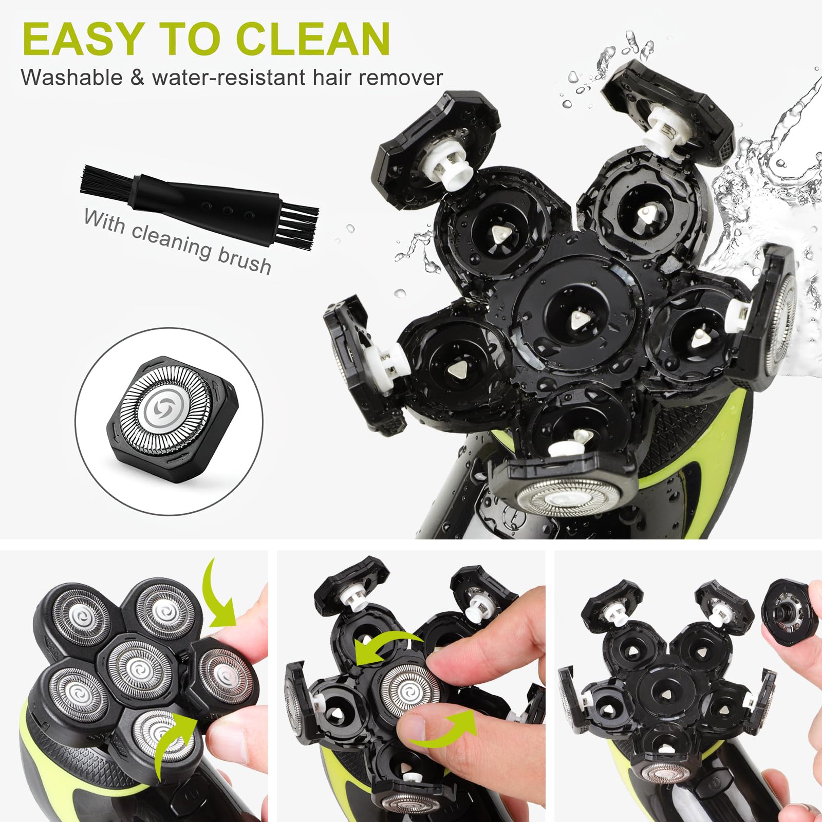 Telfun Elektryczna golarka do łysienia dla mężczyzn 5 w 1 to innowacyjne urządzenie, które zapewnia kompleksową pielęgnację zarostu i włosów. Wyposażona w trymer do brody na mokro i na sucho, golarkę rotacyjną, golarkę do głowy, oraz trymer do włosów w nosie, ten zestaw do pielęgnacji zapewnia precyzyjne i wygodne golenie oraz stylizację zarostu.