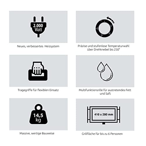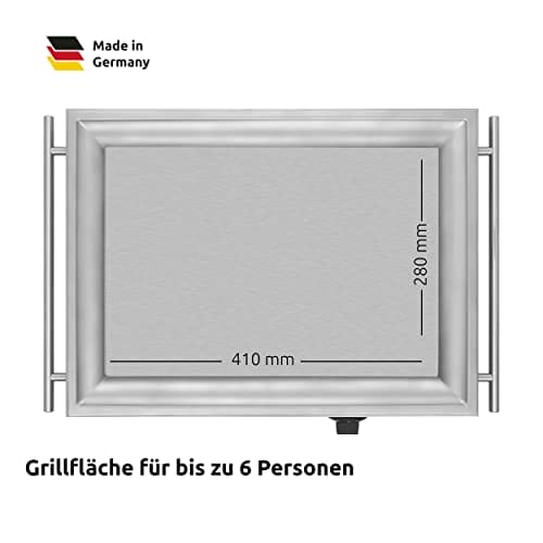 Jest to grill wykonany z wysokiej jakości stali nierdzewnej, co zapewnia doskonałą przewodność cieplną dzięki rdzeniowi stalowemu i systemowi grzewczemu Mikanit. Powierzchnia grillowa o wymiarach 28 x 41 cm pozwala na przygotowanie posiłków dla nawet 6 osób.