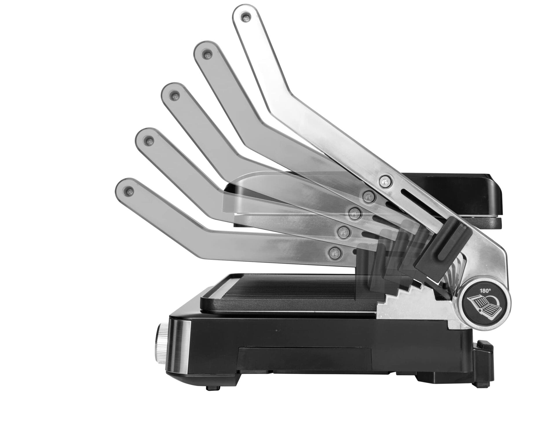 Unikalna, regulowana wysokość górnej powierzchni grilla pozwala na pełne otwarcie urządzenia, co skutkuje podwojeniem powierzchni grillowej. Jest to idealne rozwiązanie do przygotowywania większych posiłków, imprez lub wydarzeń. Grilluj steki, kanapki, warzywa i wiele więcej, ciesząc się niesamowitą elastycznością.