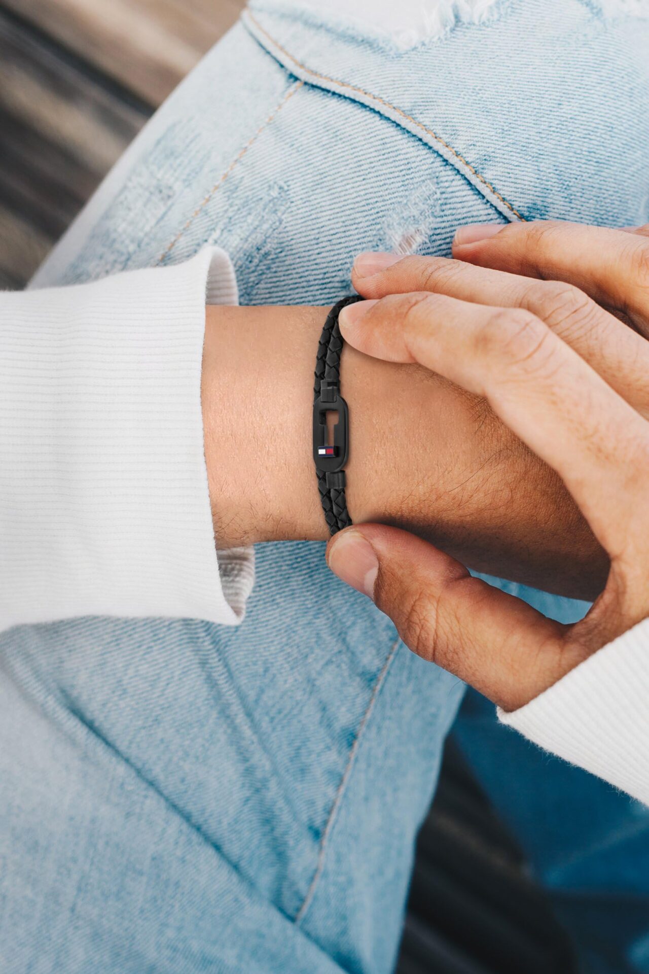 Tommy Hilfiger Herren Armband mit Steckschließe aus Leder und Edelstahl in der Farbe Schwarz, Innenumfang: 19cm, 2790386