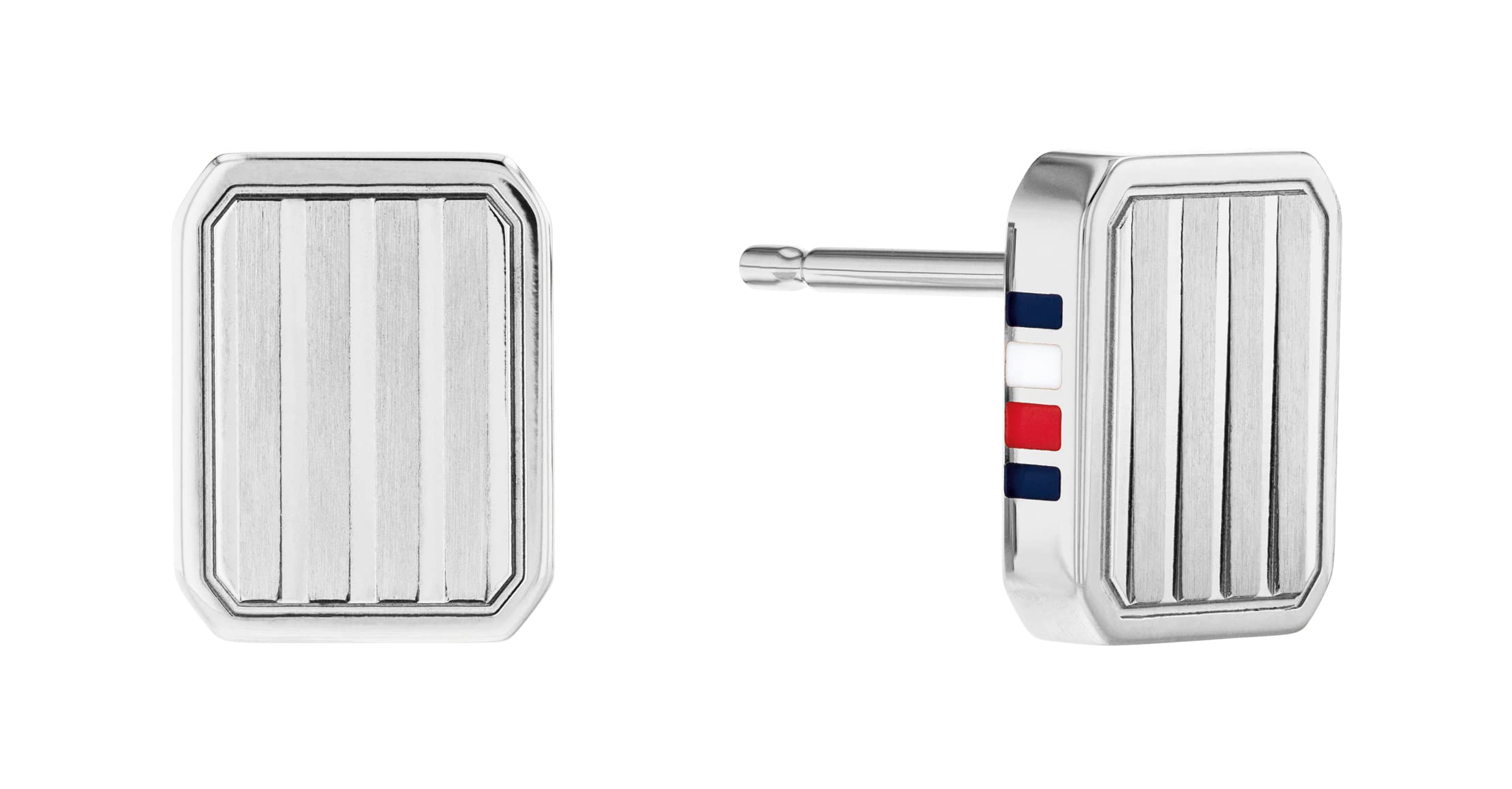 • Damskie kolczyki na sztyfcie Tommy Hilfiger • Materiał: stal nierdzewna • Rozmiar kolczyków: 9mm x 7mm • Ozdobiony emalią Tommy Hilfiger Stripe z boku stadniny • Zamknięcie: Zapięcie motylkowe