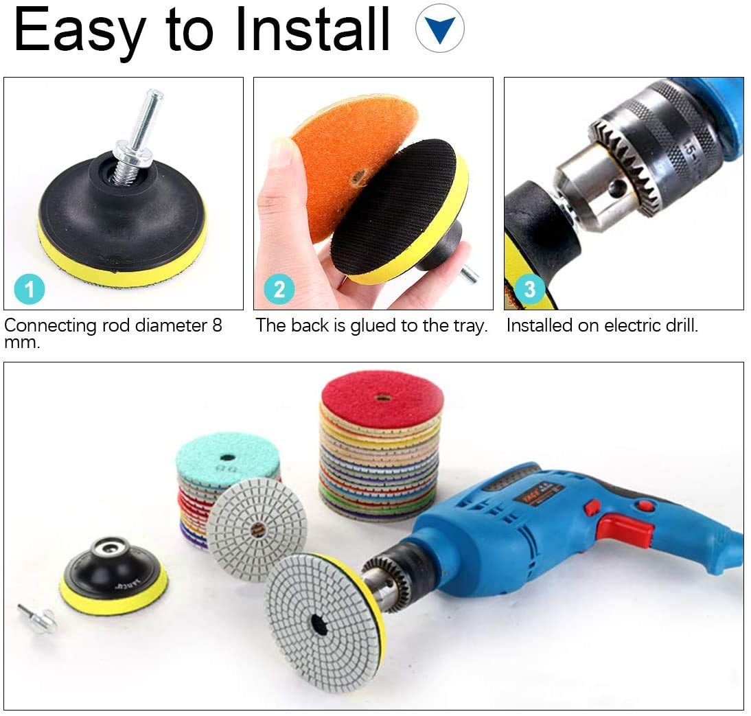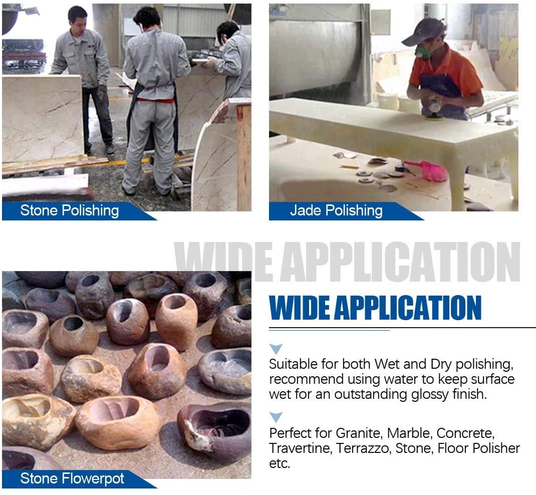 • Polerowanie na sucho / na mokro: Podkładka polerska może być stosowana do polerowania na mokro i na sucho, dla najlepszych rezultatów zaleca się stosowanie podkładek polerskich z wodą; idealna do wszystkich twardych materiałów powierzchniowych, takich jak granit, beton, marmur, kamień, płytki itp