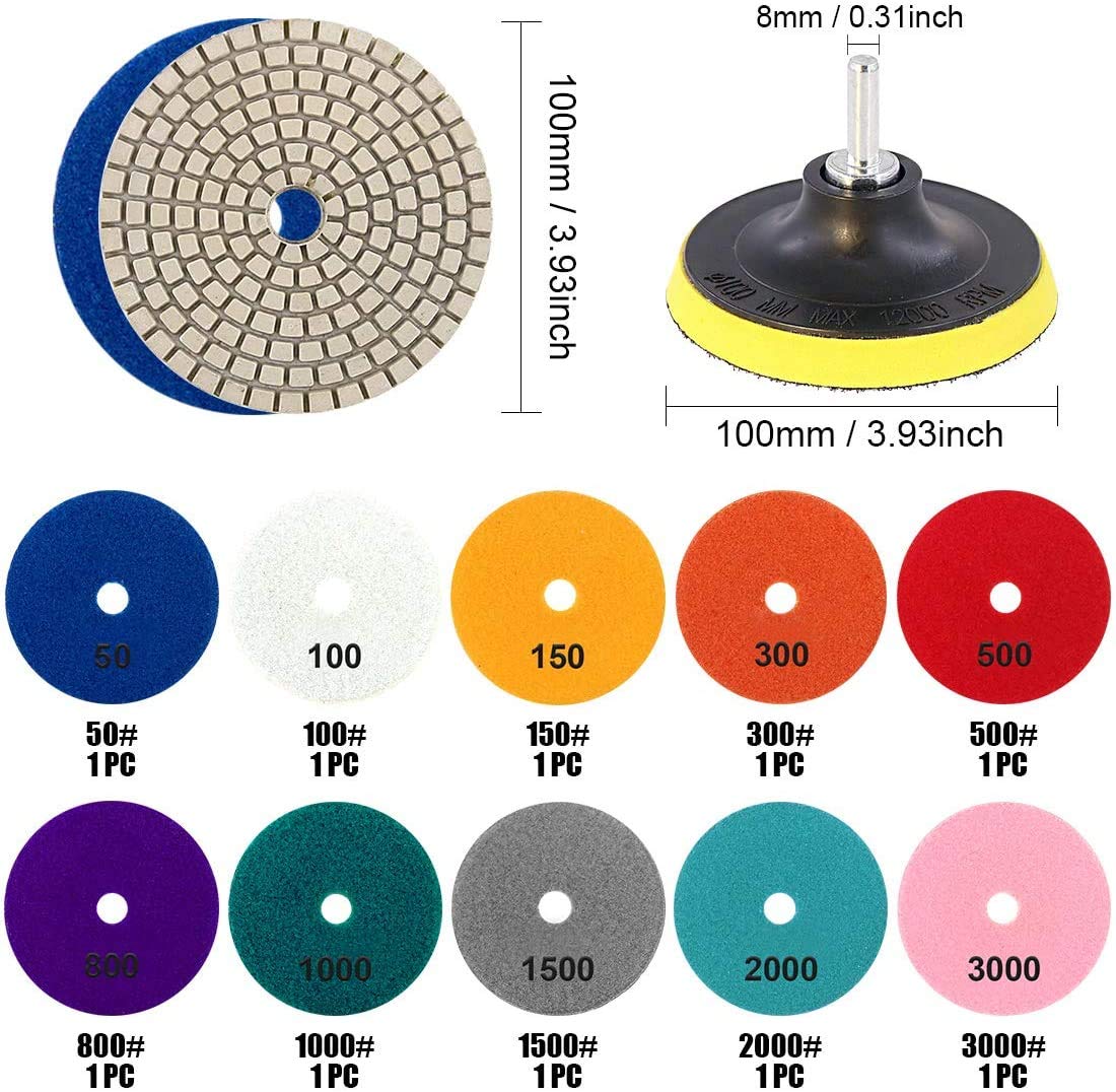 Diamentowe podkładki do polerowania Topcloud 10 cali 10 podkładek do granitu kamiennego marmuru młynka do podłogi lub polerki 50 # – 3000 # z podkładką na rzep podkładki do polerowania na mokro