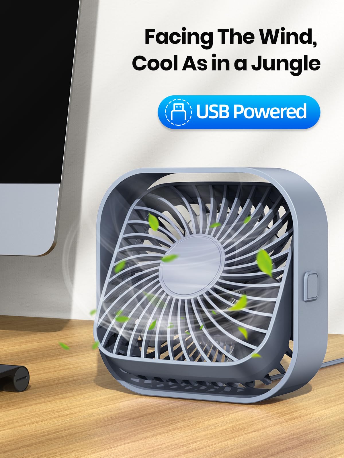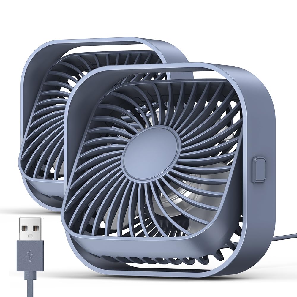TOPK Wentylator biurkowy USB 2 sztuki – cichy, 3-biegowy, 360° chłodzenie