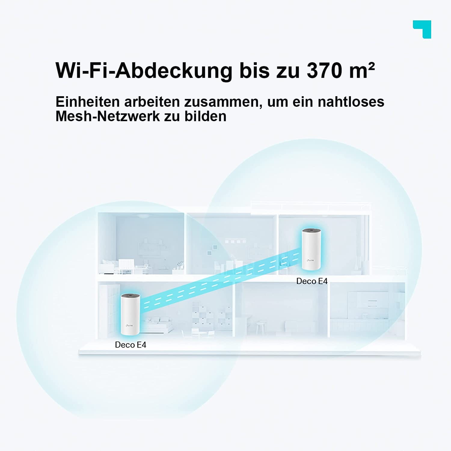 TP-Link Deco E4 (3-Pack), System Mesh WiFi AC1200, Dwuzakresowy 2.4GHz/5GHz, 2 porty 10/100 Mb/s, MU-MIMO, Kontrola rodzicielska, Aplikacja Deco, Kompatybilny z Alexa, Kolor: Biały