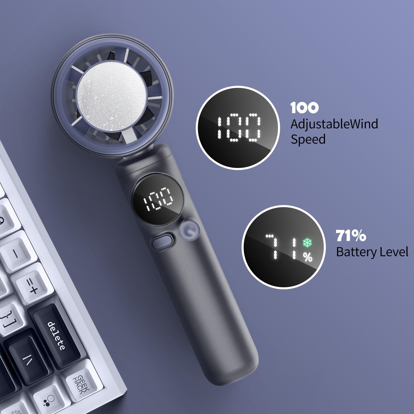 **Regulowana prędkość**: Wentylator oferuje aż 100 poziomów prędkości, co pozwala na precyzyjne dostosowanie intensywności nawiewu do indywidualnych potrzeb użytkownika. W przeciwieństwie do konkurencyjnych modeli, które często mają tylko kilka ustawień, nasz wentylator umożliwia pełną kontrolę nad strumieniem powietrza, co czyni go idealnym rozwiązaniem zarówno dla osób preferujących delikatny powiew, jak i tych, którzy potrzebują intensywnego chłodzenia.
