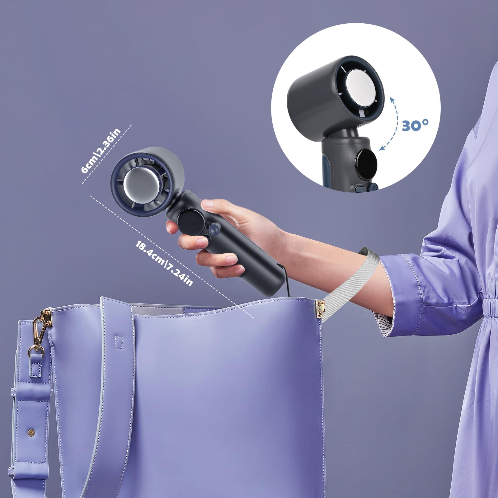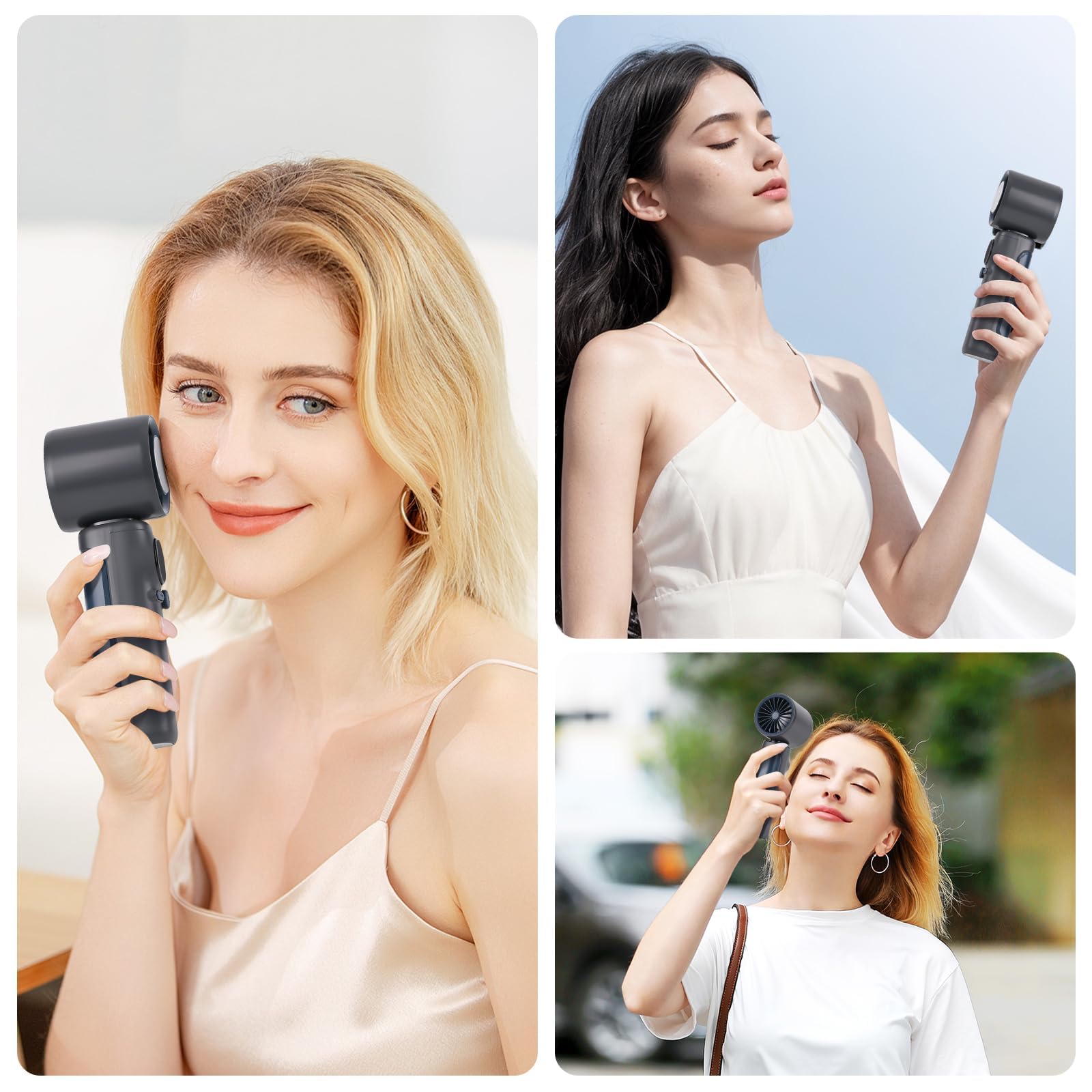 **Kompaktowy i lekki design**: Wentylator został zaprojektowany z myślą o mobilności. Jego niewielkie wymiary i lekka konstrukcja sprawiają, że łatwo zmieści się w torbie czy plecaku, co czyni go idealnym towarzyszem w podróży. Dodatkowo, nowoczesny wygląd sprawia, że jest atrakcyjny zarówno dla kobiet, jak i mężczyzn.