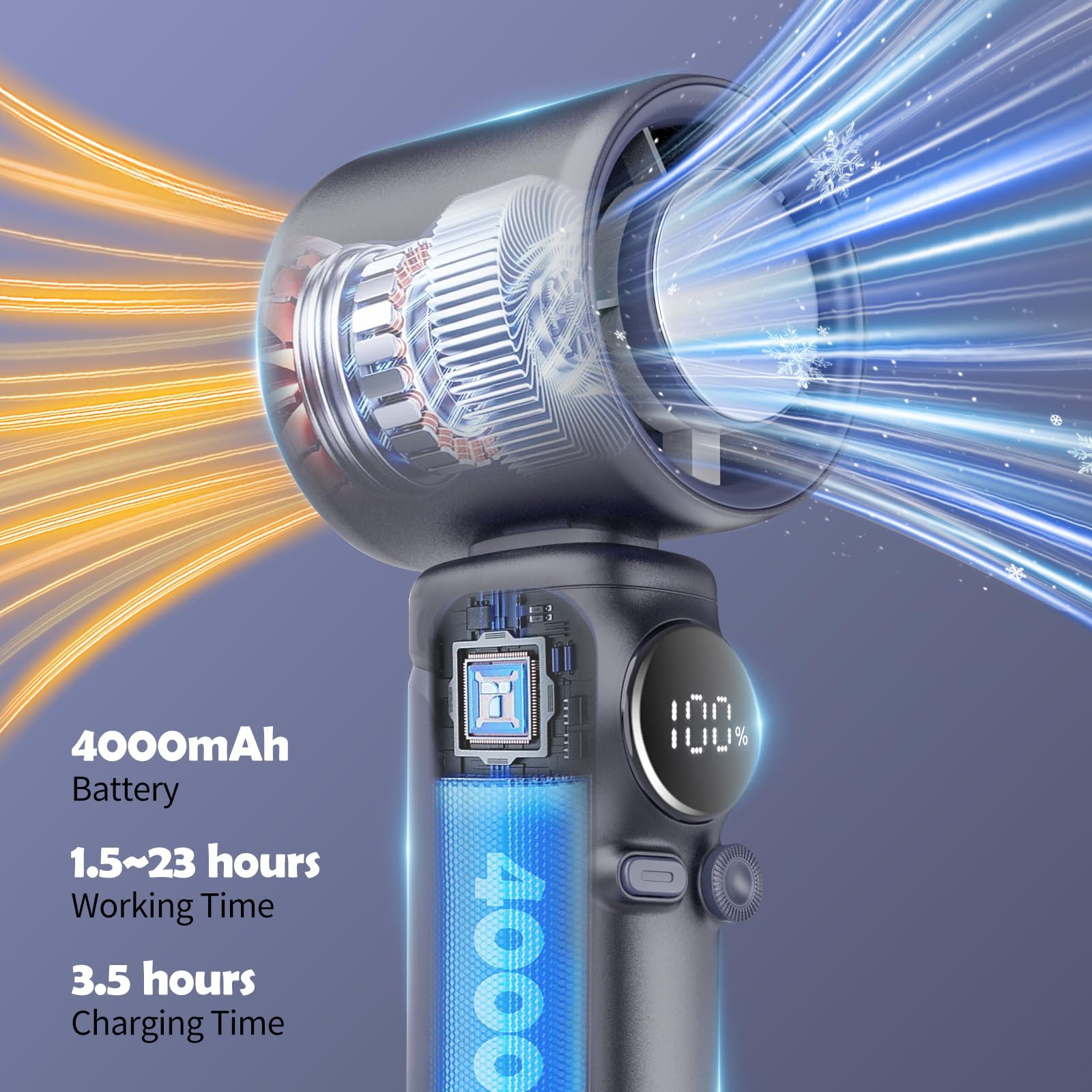 **Wydajność i moc**: Dzięki pojemnej baterii 4000 mAh, wentylator zapewnia długotrwałe chłodzenie, które może trwać nawet do 12 godzin na jednym ładowaniu. To znacznie więcej niż standardowe wentylatory ręczne dostępne na rynku, które często oferują krótszy czas pracy. Możliwość ponownego ładowania sprawia, że jest to ekologiczne rozwiązanie, eliminujące potrzebę wymiany baterii.