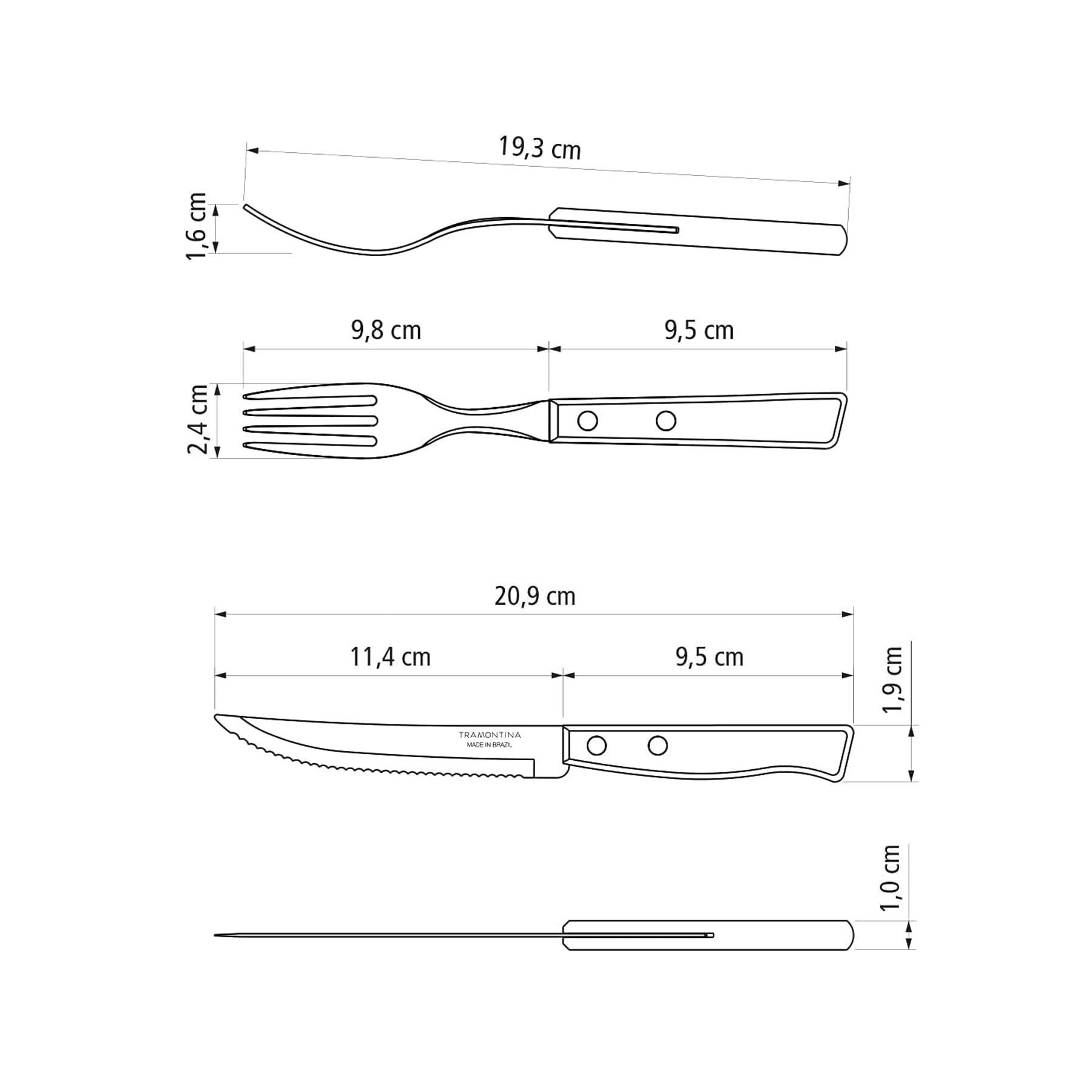 Wyprodukowano w Brazylii:: Wyprodukowano w Brazylii: zestaw sztućców dla 6 osób, poddany obróbce termicznej dla maksymalnej trwałości z 90-dniową na wady produkcyjne
