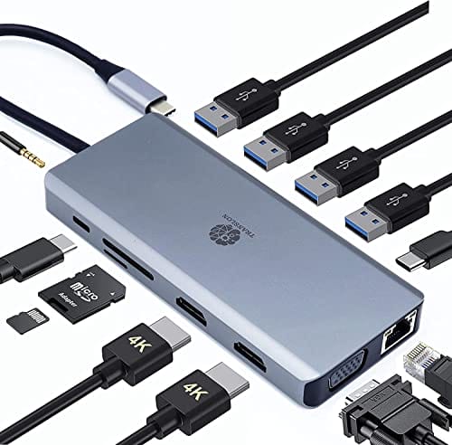 Hub USB C, kompaktowa stacja dokująca, 13 w 1, potrójny wyświetlacz, PD 100W, 2X HDMI, 1x VGA, 4X USB, 1x Extra Typ C, czytnik kart SD/microSD, LAN Ethernet, gniazdo 3,5 mm