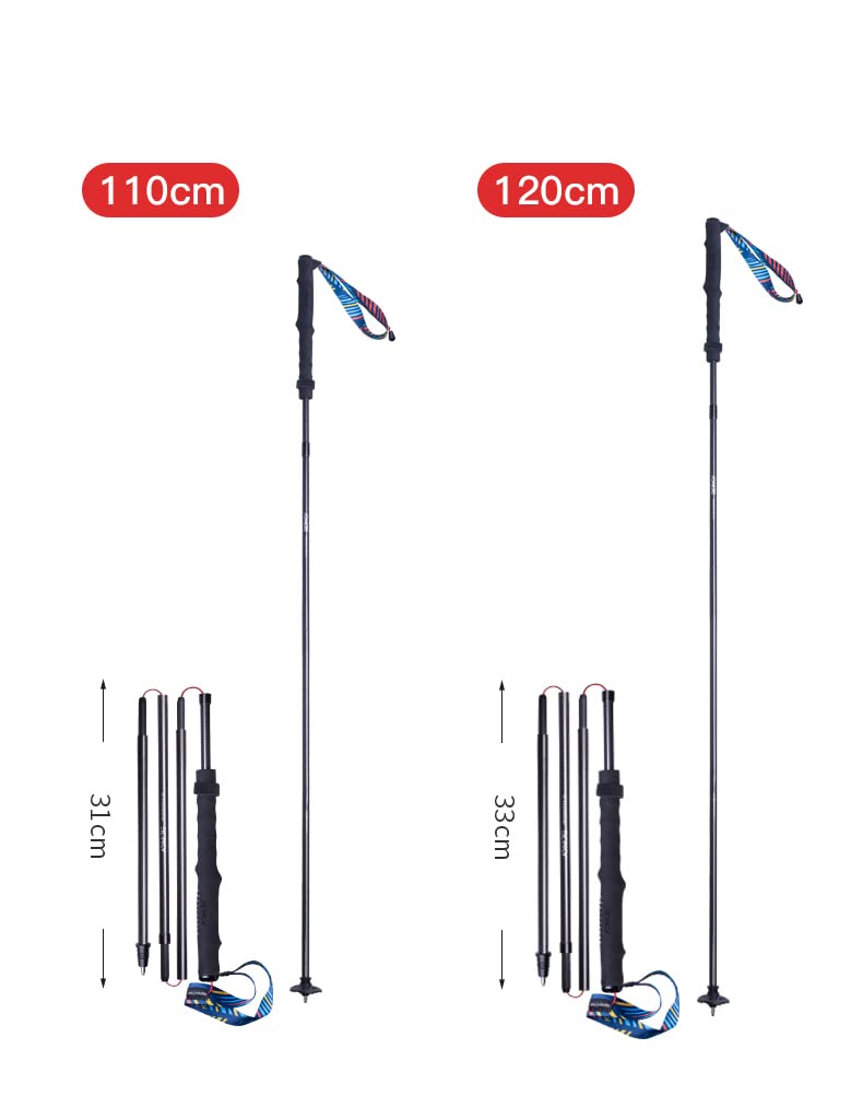 AONIJIE Canbo Fiber kijki trekkingowe, składane, lekkie, 110/120 cm, ultralekkie, do wędrówek, biegania, wspinaczki górskiej, wysyłania pary