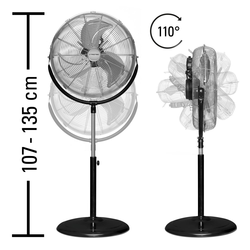 Jednym z kluczowych atutów modelu TVM 18 S jest możliwość regulacji kąta nachylenia do 110°, co pozwala na precyzyjne skierowanie strumienia powietrza w wybrane miejsce. Użytkownicy mogą dostosować wentylator do swoich indywidualnych potrzeb, co czyni go bardziej uniwersalnym w porównaniu do konkurencyjnych modeli.