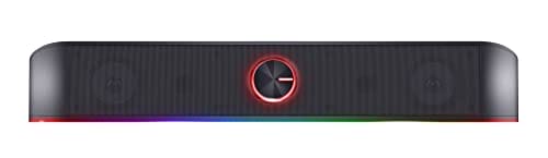 Trust Gaming Stereo Soundbar z oświetleniem RGB GXT 619 Thorne – komputer, głośnik 2.0 z oświetleniem LED RGB, zasilanie przez USB, 12 W, PC/laptop, czarny