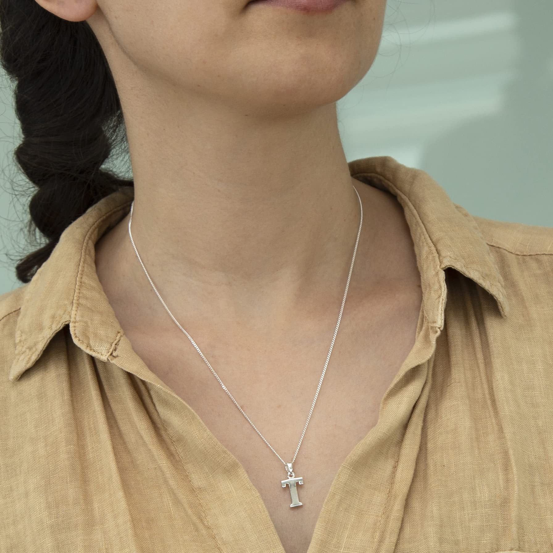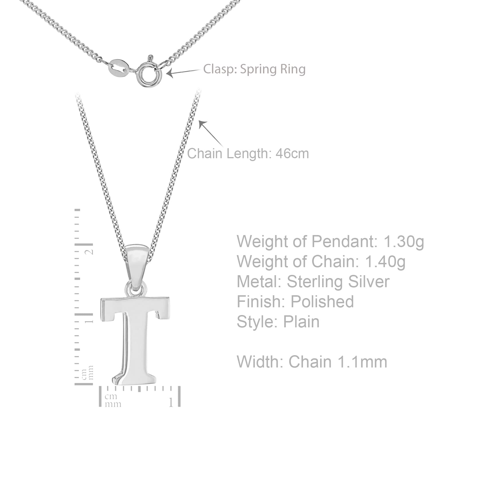 Tuscany Silver Damski wisiorek z inicjałem ze srebra wysokiej próby na splocie pancerka o długości 46 cm / 18 cali