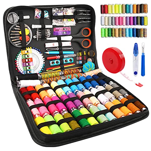 TWBEST 264 szt. zestaw akcesoriów do szycia, zestaw do szycia, 43 szpulki, zestaw do szycia do domu z torbą do przenoszenia, duży format, zestaw do szycia dla początkujących, dzieci, w podróży, na kem