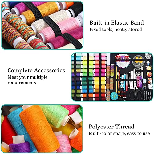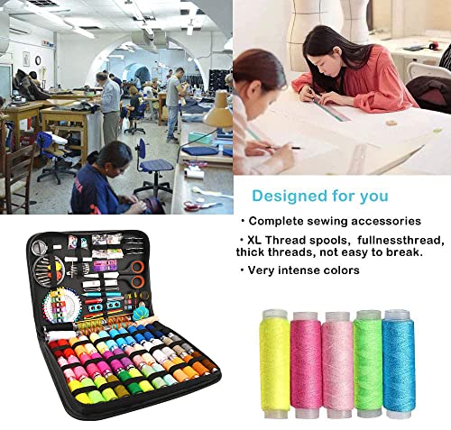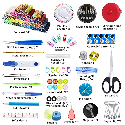 ✅ 【264 Materiały do: 【264 Materiały do szycia Premium】 Przenośny zestaw do szycia zawiera 264 materiały do szycia, 43 różne kolorowe nici (każdy kolor ma długość 120 metrów), igły, guziki, szpilki, haczyki, naparstki, ołówek, nawlekacz, guziki, szpilki do szycia, nożyczki i szkło powiększające, taśma miernicza itp.