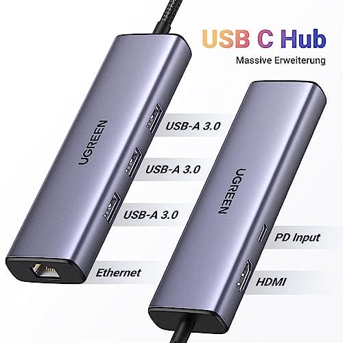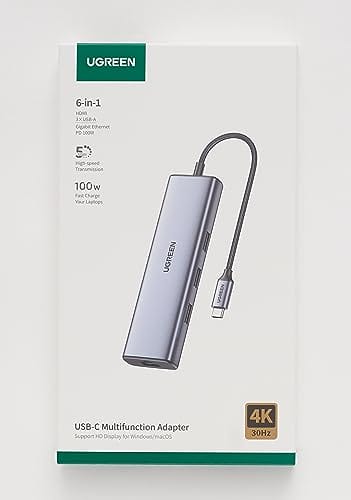 ✅ Koncentrator USB C: Koncentrator USB C Ethernet 6 w 1: UGREEN koncentrator USB C z Ethernetem łączy w sobie wiele dodatkowych portów w bardzo kompaktowej obudowie, w tym 3 porty USB A 3.0, port HDMI 4K 30Hz, port USB C PD i port Gigabit Ethernet, tym bardziej zapewnić możliwości w pracy.