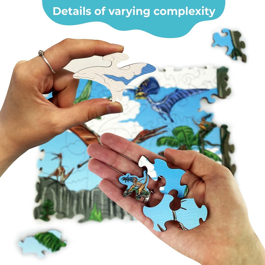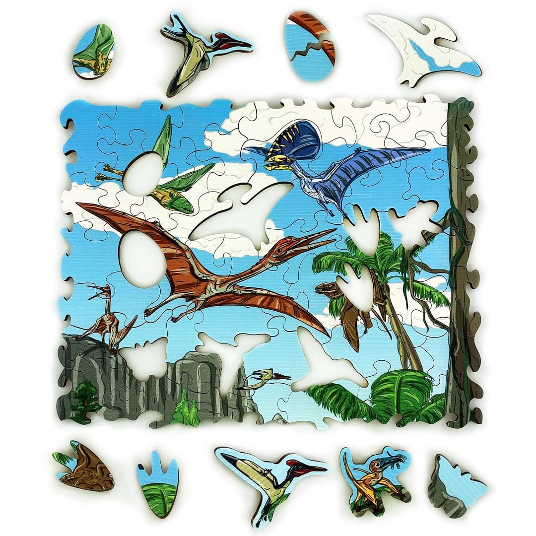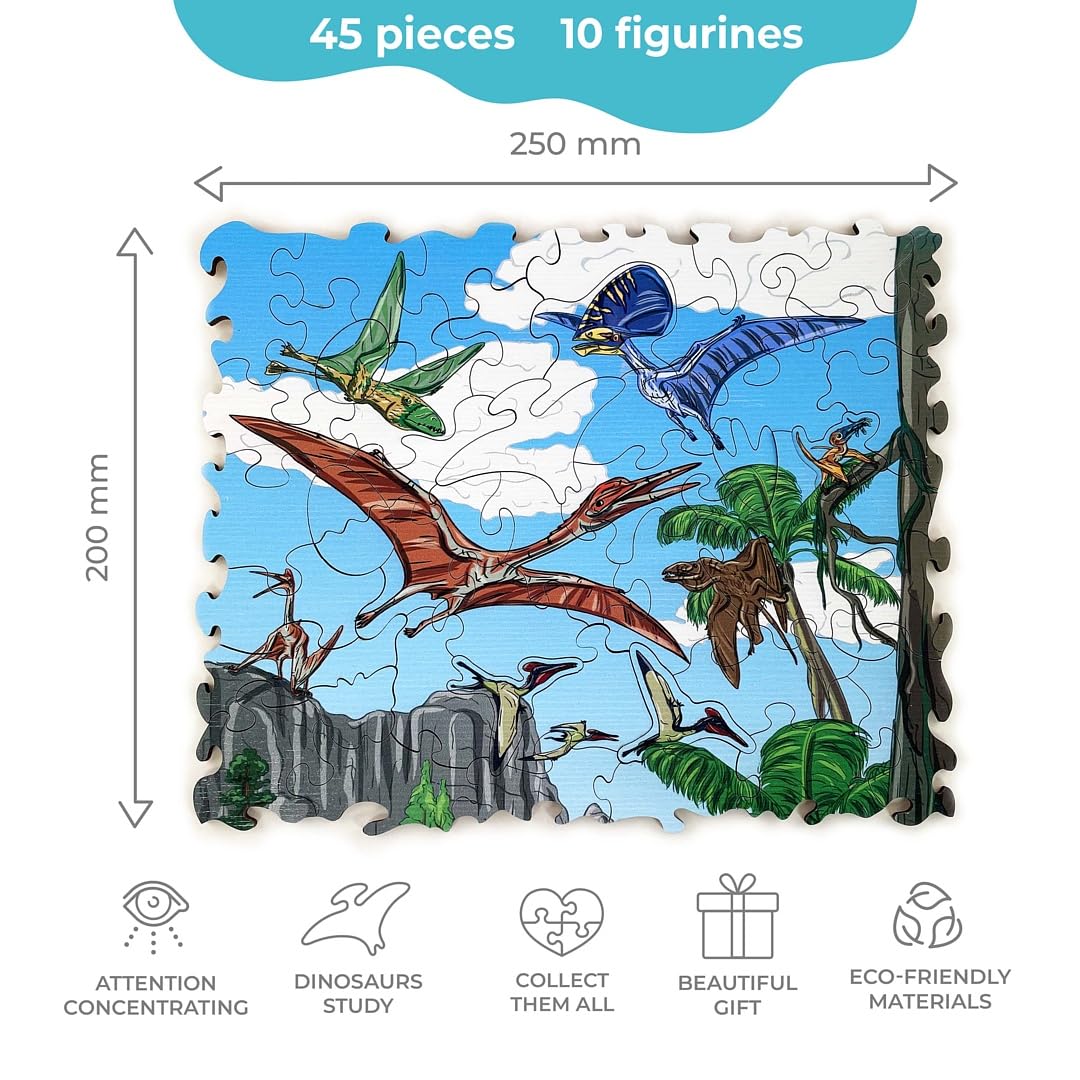 Ulanik Drewniane Puzzle Latające Dinozaury – Gra Edukacyjna dla Dzieci od 3 Lat w Przedszkolu – 45 Elementów