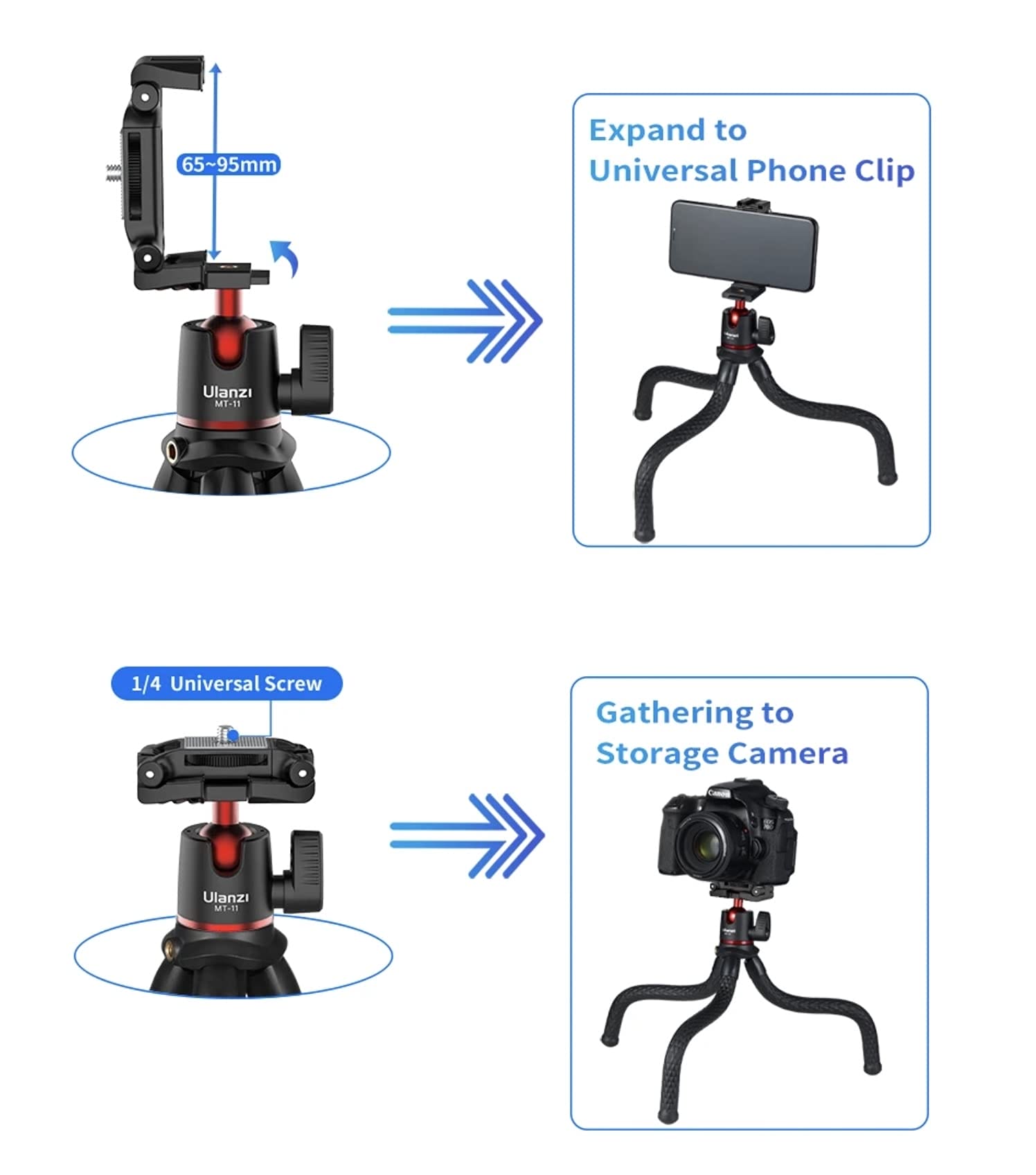 Ulanzi Mt-11 1907 Statyw Typu Ośmiornica Czarny 3251 x 686 x 66 cm to wszechstronny statyw, który doskonale sprawdzi się zarówno przy fotografowaniu telefonem, jak i aparatem. Jest to niezwykle praktyczne narzędzie, które umożliwia stabilne ustawienie urządzenia w różnych sytuacjach.
