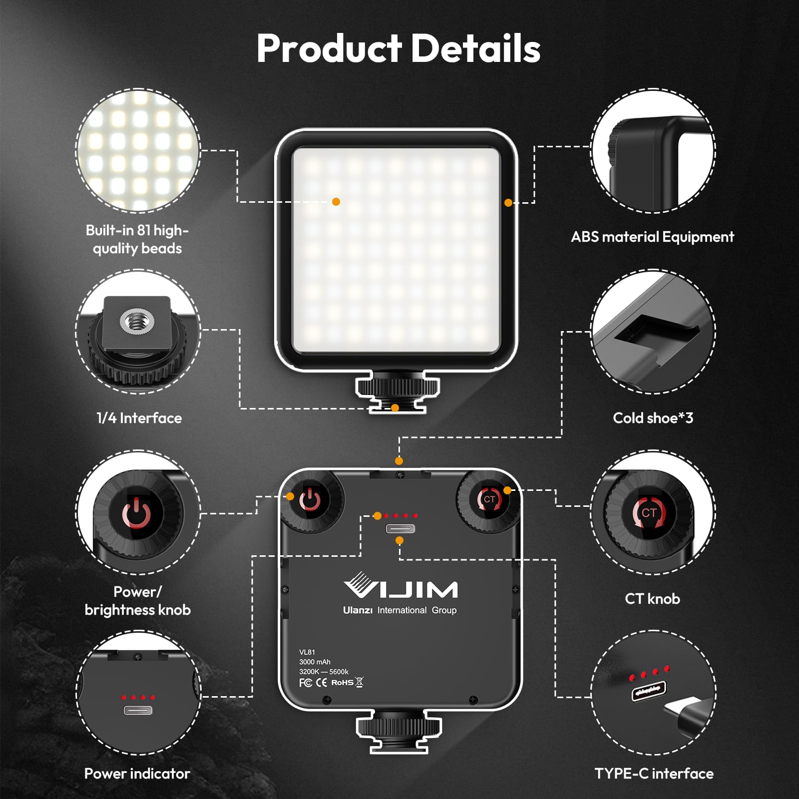 ULANZI VL81 została zaprojektowana z myślą o mobilności i wygodzie użytkowania. Lampa jest kompaktowa i lekka, co sprawia, że łatwo ją przenosić i montować na aparacie fotograficznym. Zasilana jest wbudowaną baterią o pojemności 3000 mAh, co pozwala na długotrwałe korzystanie bez konieczności częstego ładowania.