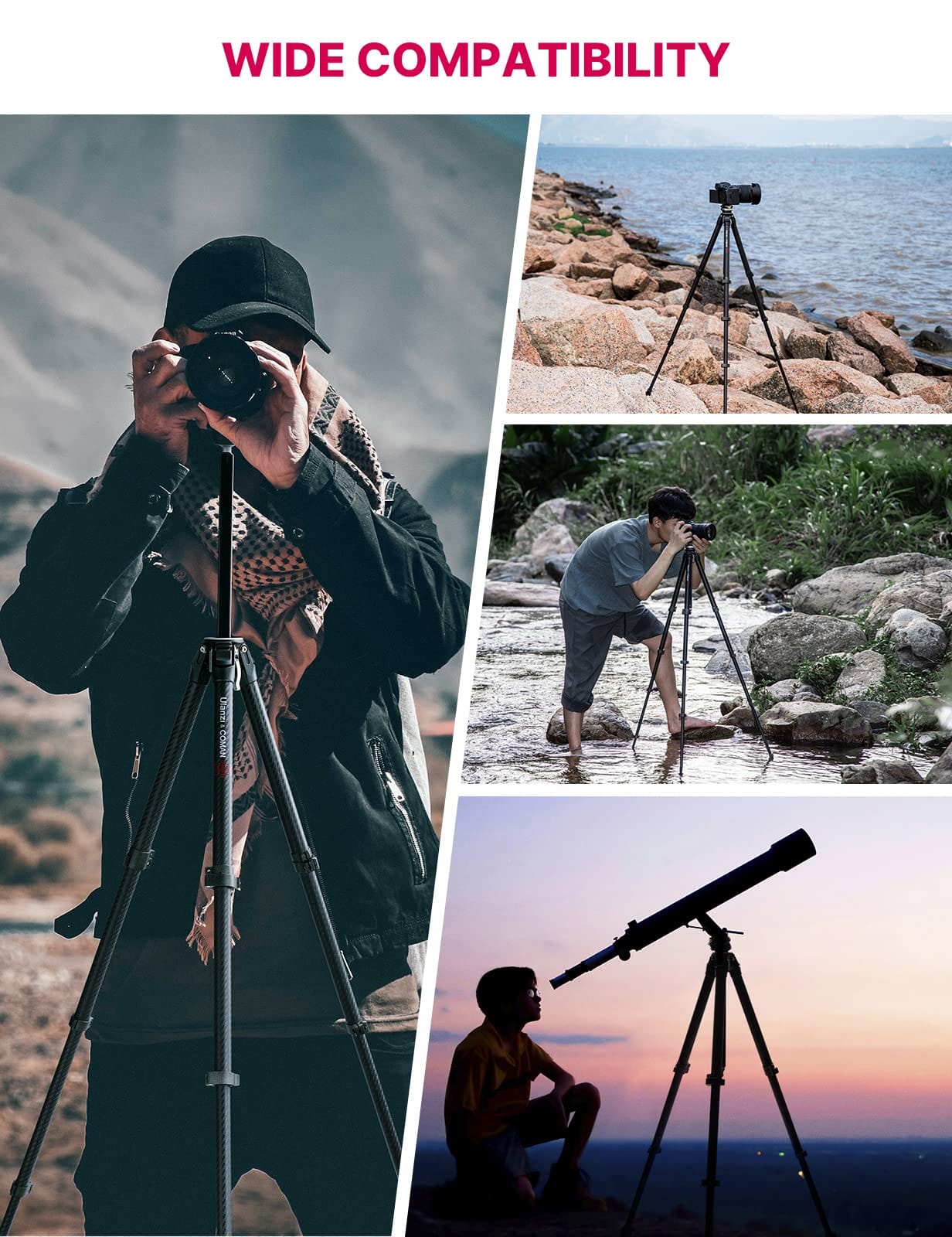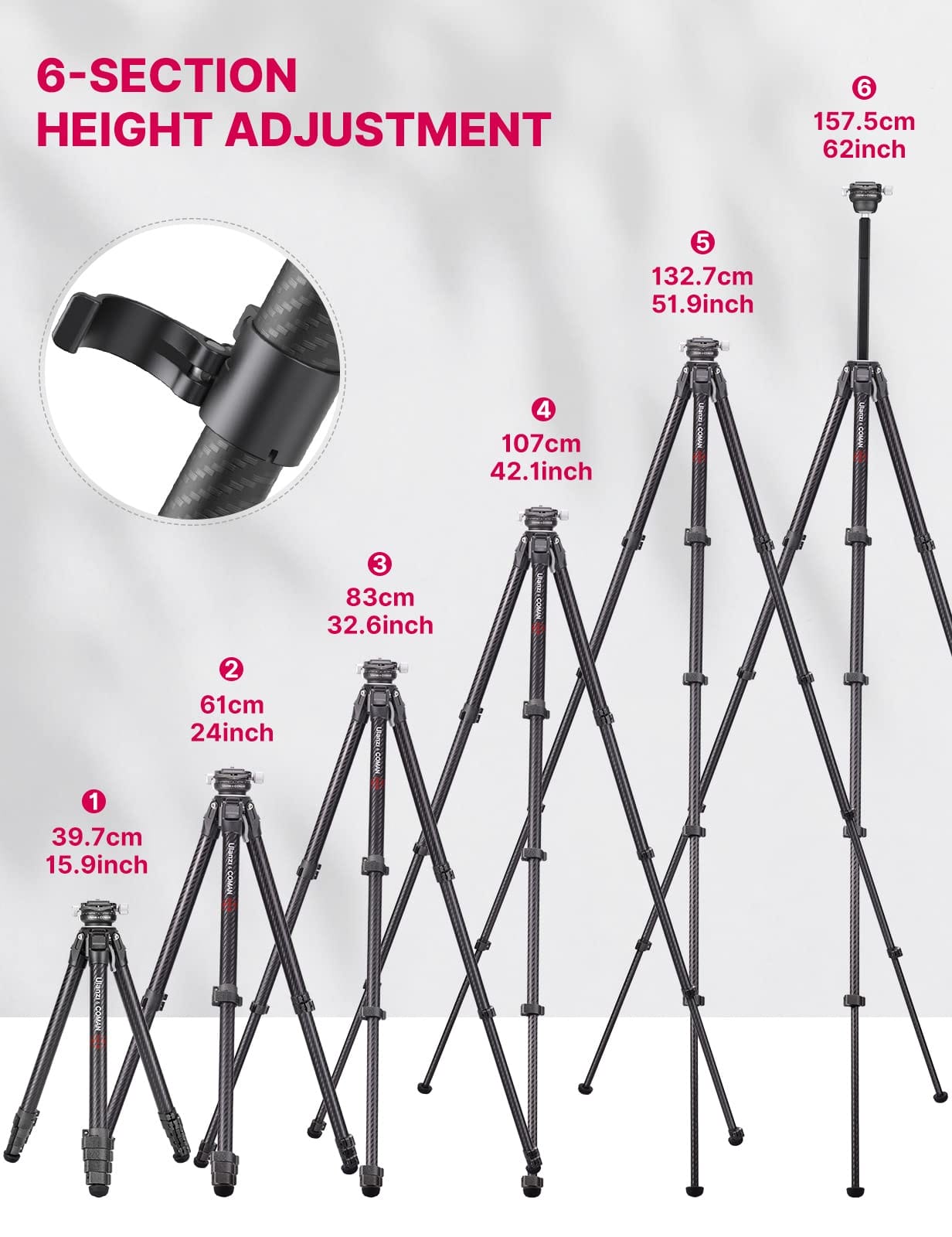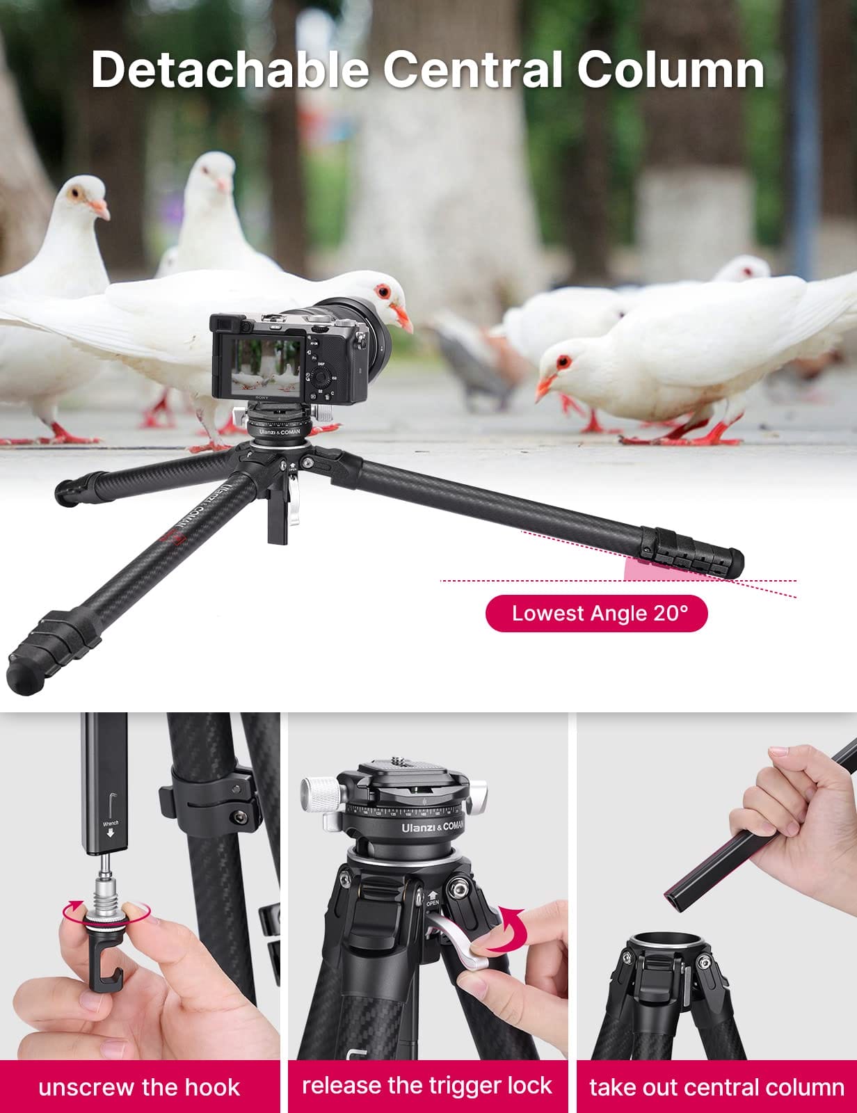 ULANZI ZERO-Y-EU to lekki i wytrzymały statyw podróżny, idealny dla wszystkich kamer DSLR. Nogi statywu wykonane są z włókna węglowego, co zapewnia mocną i stabilną konstrukcję, podczas gdy metalowe części wykonane są z aluminium. Statyw posiada haczyk w osi środkowej, który umożliwia zawieszenie plecaka w celu zwiększenia przeciwwagi. Maksymalne obciążenie kolumny środkowej wynosi imponujące 18 kg, podczas gdy waga statywu wynosi zaledwie 1 kg. Minimalny rozmiar przechowywania wynosi 40 cm, co czyni go niezwykle kompaktowym i przenośnym.