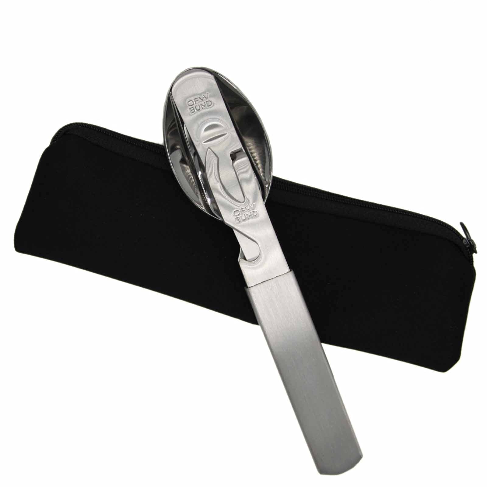 ✅ ✅1 zestaw z: ✅1 zestaw z nożem, widelcem, łyżką i otwieraczem do puszek/butelek & ✅ TORBA DO PRZECHOWYWANIA Z NEOPRENU NA ZAMEK BŁYSKAWICZNY
