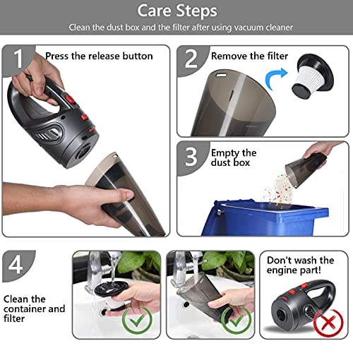 - KOMPLEKSOWE SPRZĄTANIE: Najmocniejszy odkurzacz ręczny wyposażony w 3 różne końcówki. Końcówka szczotkowa może usuwać włosy i kurz, wąska końcówka i długi wąż mogą być używane do czyszczenia kanap, szczelin i kątów, nie martwiąc się już o trudno dostępne miejsca. Odkurzacz nadaje się do długotrwałego użytku w suchych warunkach!