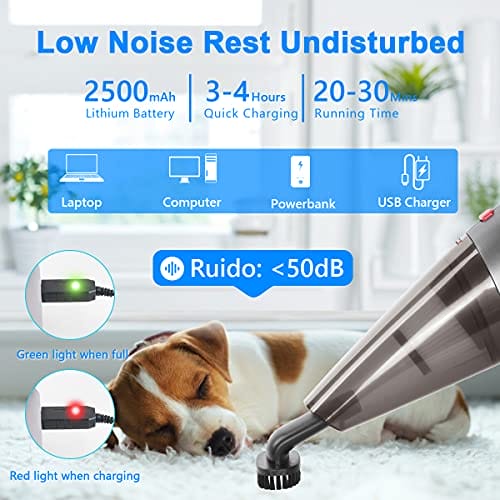 - DŁUŻSZY CZAS UŻYTKOWANIA I PRACY AKUMULATORA: Odkurzacz samochodowy wykorzystuje technologię szybkiego ładowania, co pozwala na pełne naładowanie w ciągu około 3-4 godzin. Wbudowany akumulator litowo-jonowy o pojemności 2500mAh zapewnia stałą pracę do 30 minut. Uwaga: Przed pierwszym użyciem należy w pełni naładować odkurzacz.