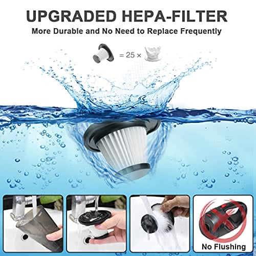 - WIĘKSZE BEZPIECZEŃSTWO: Bezworkowy odkurzacz ręczny URAQT uzyskał certyfikaty bezpieczeństwa CE, ROHS, FCC i MSDS, a do ładowania używa bezpiecznego dla organizmu człowieka interfejsu USB 5V. Nasz filtr HEPA jest możliwy do prania i ponownego użycia, skutecznie filtruje 99% osadów i cząstek.