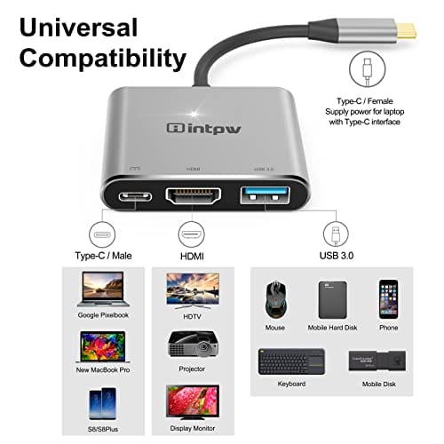 Adapter USB C na HDMI 4K do MacBook Pro to innowacyjne urządzenie, które umożliwia podłączenie MacBooka Pro do telewizora, monitora lub projektora za pomocą portu HDMI. Adapter ten jest również wyposażony w port USB 3.0, port ładowania typu C PD oraz jest kompatybilny z przełącznikiem Nintendo, MacBookiem Air 2018, Chromebookiem Pixel i Dell XPS13.