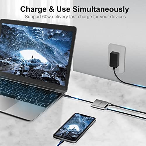 Port ładowania typu C PD pozwala na jednoczesne ładowanie MacBooka Pro podczas korzystania z adaptera. To bardzo wygodne rozwiązanie, które eliminuje konieczność korzystania z wielu kabli i ładowarek.