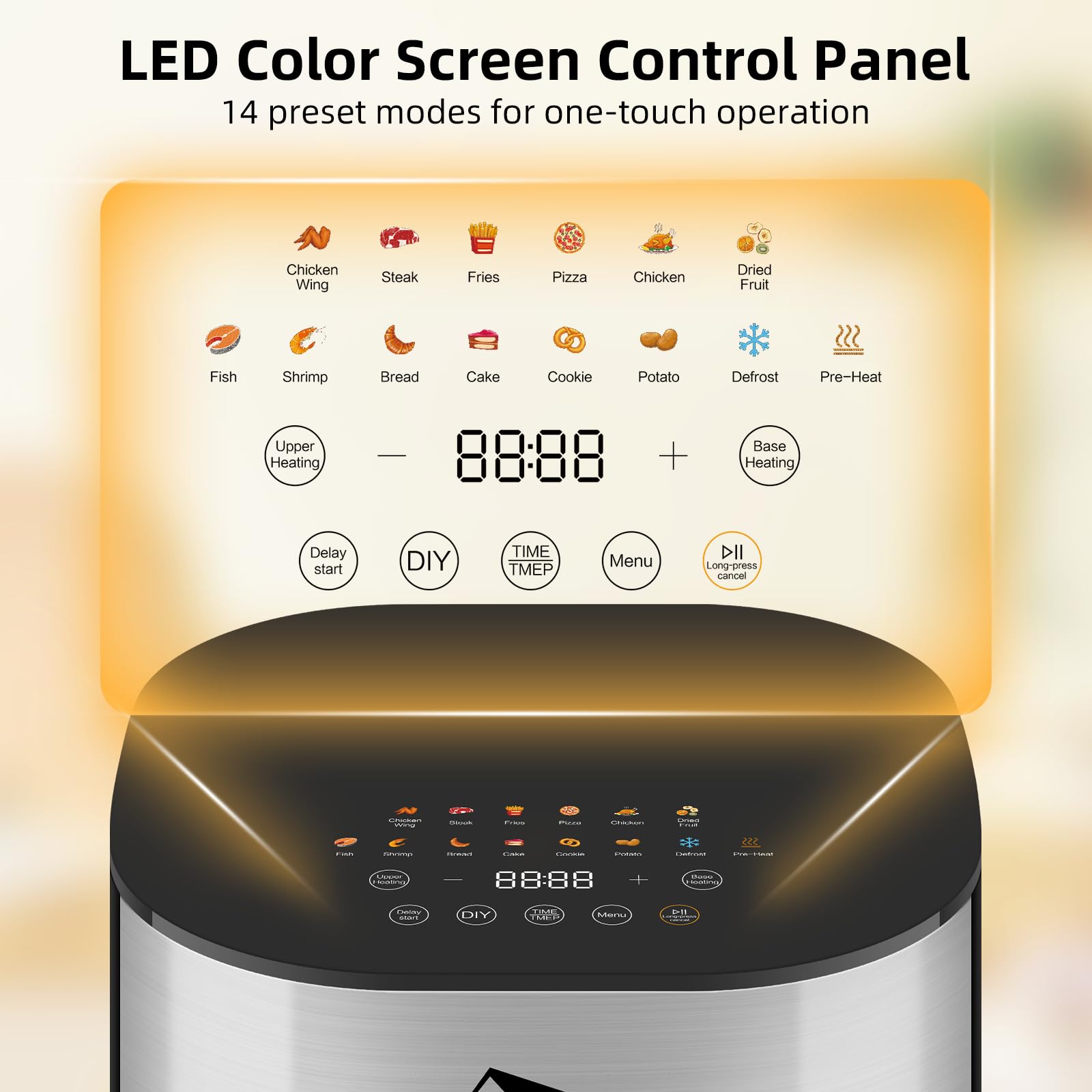 ✅ 【Inteligentne sterowanie dotykowe】Kolorowy: 【Inteligentne sterowanie dotykowe】Kolorowy ekran LED, łatwa obsługa. 14 wstępnie ustawionych trybów zapewnia więcej opcji, dzięki czemu przygotowywanie potraw jest łatwe i wydajne oraz zapewnia możliwość dostosowania czasu i temperatury