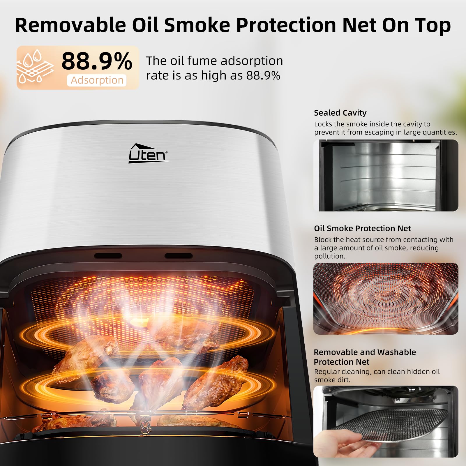 ✅ 【Siatka chroniąca przed: 【Siatka chroniąca przed dymem olejowym】Siatka ochronna na filtr oleju o strukturze plastra miodu ze stali nierdzewnej na górze jest zdejmowana i można ją myć bezpośrednio w zmywarce. Współczynnik adsorpcji oparów oleju wynosi do 88,9%, co zmniejsza pozostałości tłuszczu w kuchni i ułatwia czyszczeni
