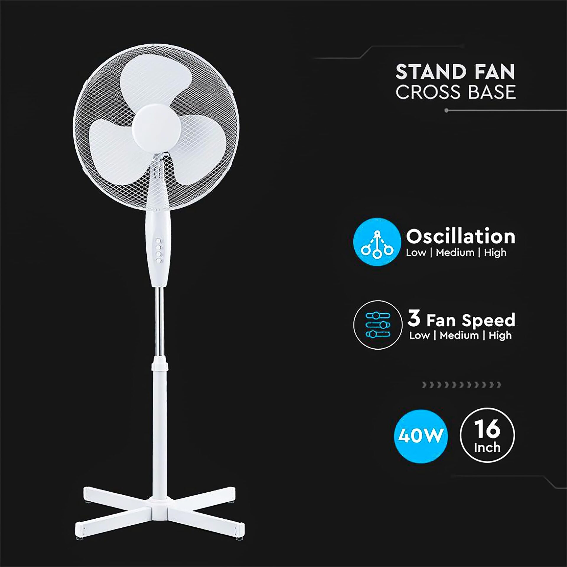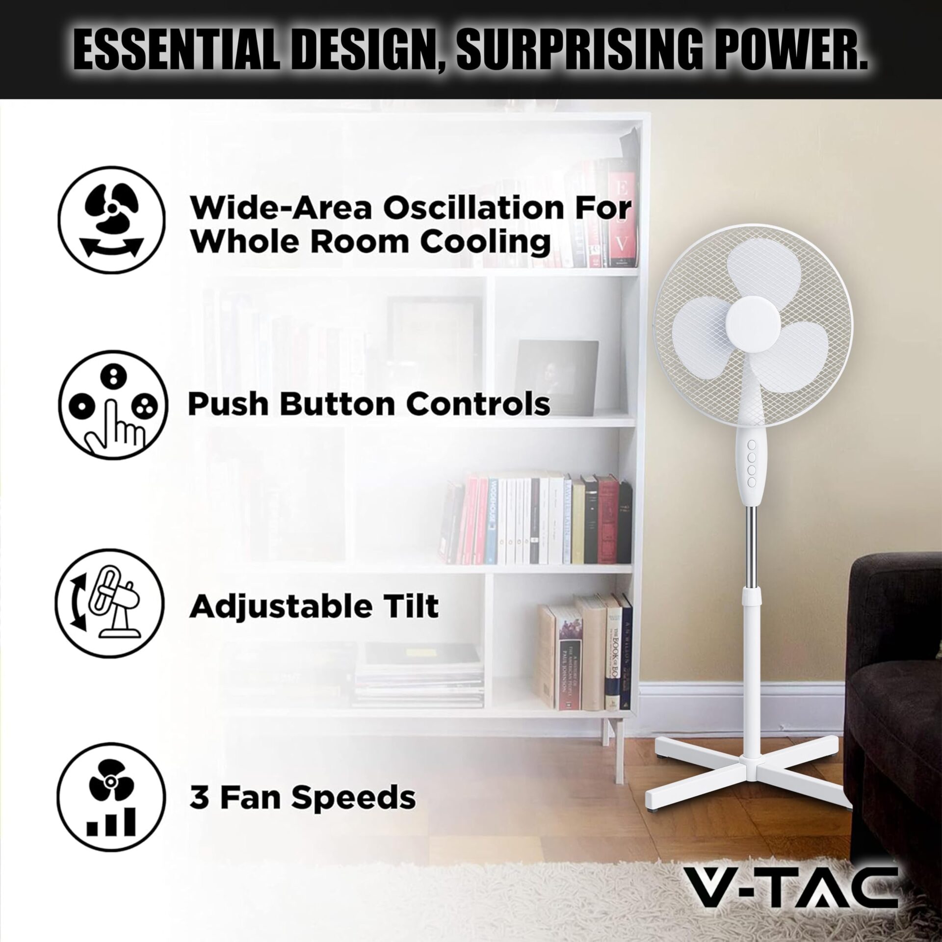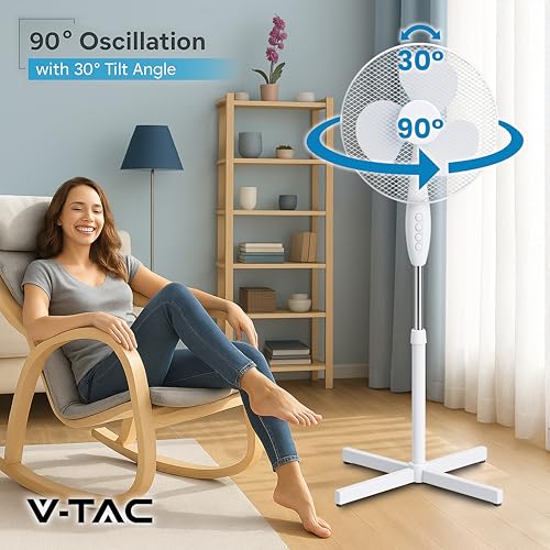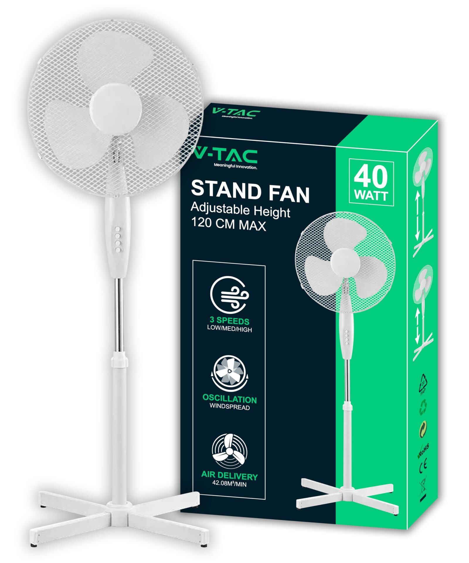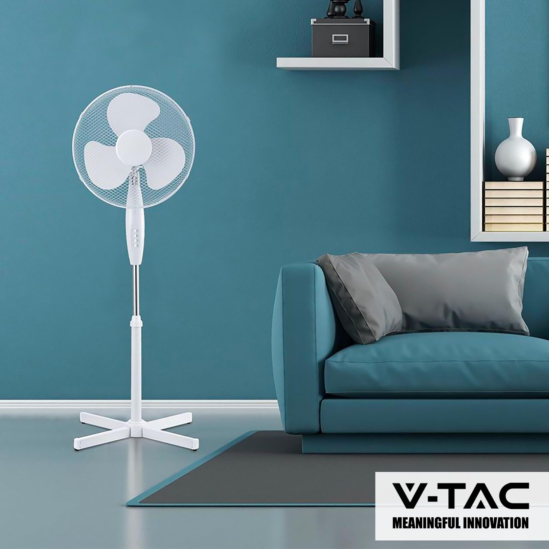 V-TAC Wentylator Stojący 40W – Wydajny, Elegancki, 3 Stopnie Wysokości