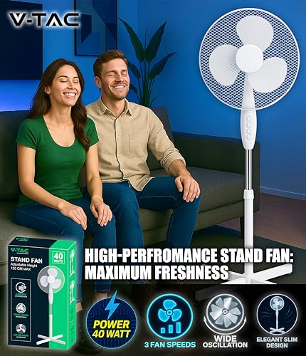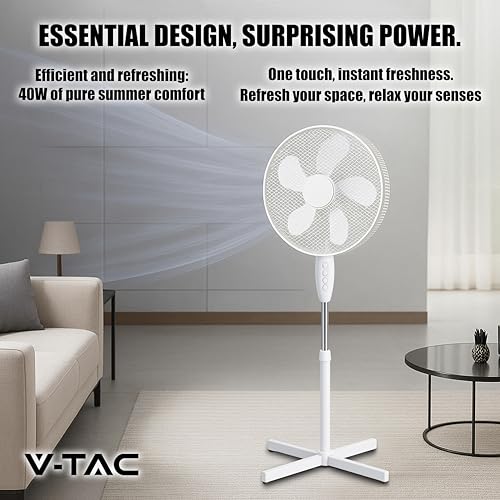 Wentylator stojący V-TAC o mocy 40 W to idealne rozwiązanie dla osób poszukujących efektywnego i stylowego urządzenia do chłodzenia. Jego wydajny przepływ powietrza zapewnia optymalne warunki w każdych warunkach, a elegancki design sprawia, że doskonale wpasuje się w każde wnętrze, dodając mu nowoczesnego charakteru.