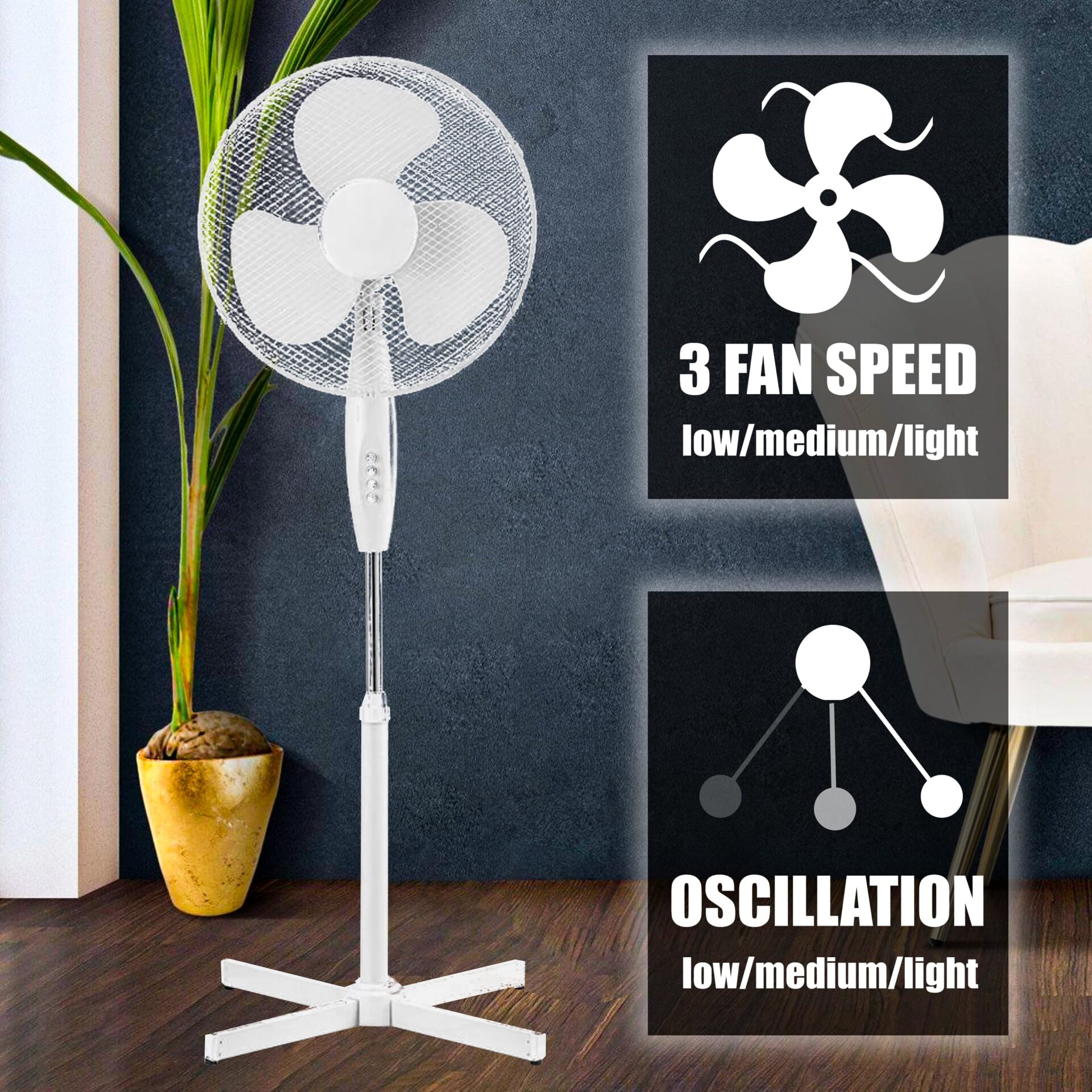 Wentylator wyposażony jest w trzy obrotowe łopatki, które skutecznie rozprzestrzeniają chłodne powietrze w całym pomieszczeniu. Dodatkowo, regulowane kołysanie i pochylenie umożliwiają precyzyjne skierowanie strumienia powietrza tam, gdzie jest to najbardziej potrzebne, co wyróżnia go na tle konkurencyjnych modeli.
