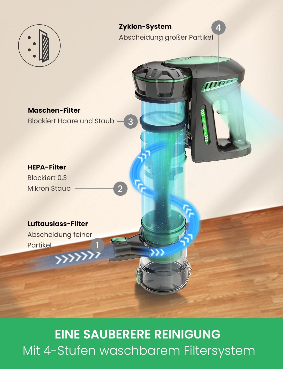 Bezprzewodowy odkurzacz z: Bezprzewodowy odkurzacz z ergonomicznym uchwytem i wielofunkcyjnymi akcesoriami, w tym szczotką 2 w 1, długą szczeliną i rurą teleskopową