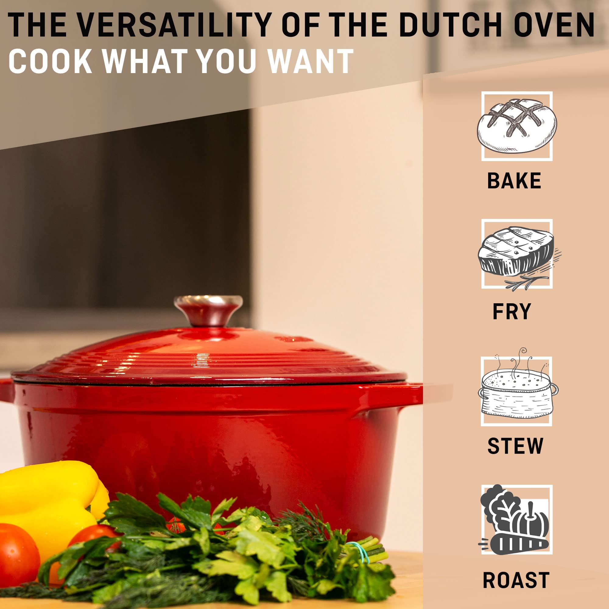 ✅ Bardzo wytrzymały :: Bardzo wytrzymały : Garnek VeoHome jest wykonany z wysokiej jakości żeliwa, co sprawia, że ten żeliwny garnek jest niezwykle wytrzymały i trwały