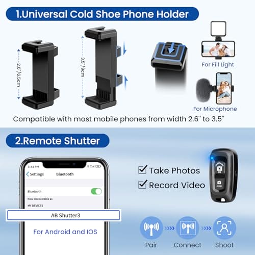 ‎Statyw, Uchwyt na telefon komórkowy, pilot zdalnego sterowania.