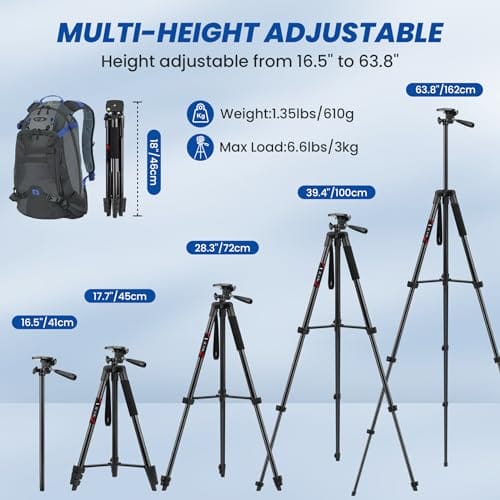 【Profesjolny statyw do: 【Profesjolny statyw do smartfo】Wysokość 162 cm (63″) specjalnie do podróżowania przygodami, vlogowania, filmów YouTube, podcastów, Facebook Live, Face Time, Instagram i streamingu żywo. Uniwersalny uchwyt telefon komórkowy, kompatybilny z iPhone 12 / 13 / 14 / 14 Pro Max SE / 11 Pro Max / XR / XS /