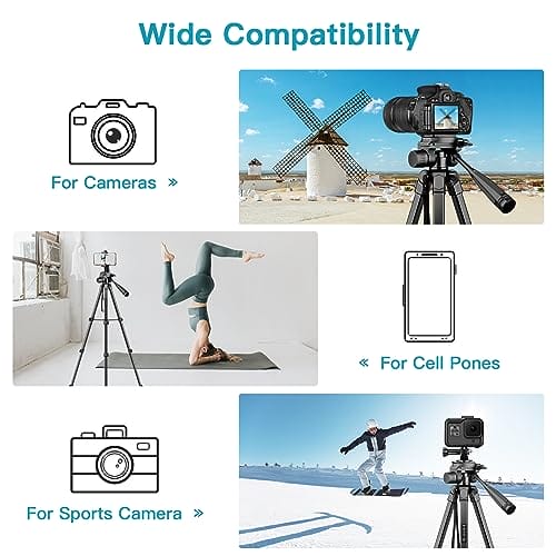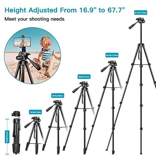 ✅ Regulowana wysokość: Ten: Regulowana wysokość: Ten statyw do telefonu z kamerą ma 5 sekcjonowych nóg, a wysokość można zwiększyć od 43 cm / 16,9 cala do 172 cm / 67,7 cala. Nogi są wykonane z wysokiej jakości stopu aluminium, o maksymalnej nośności 3,5 kg, dzięki czemu są wytrzymałe i trwałe do różnych wysokości fotografowan