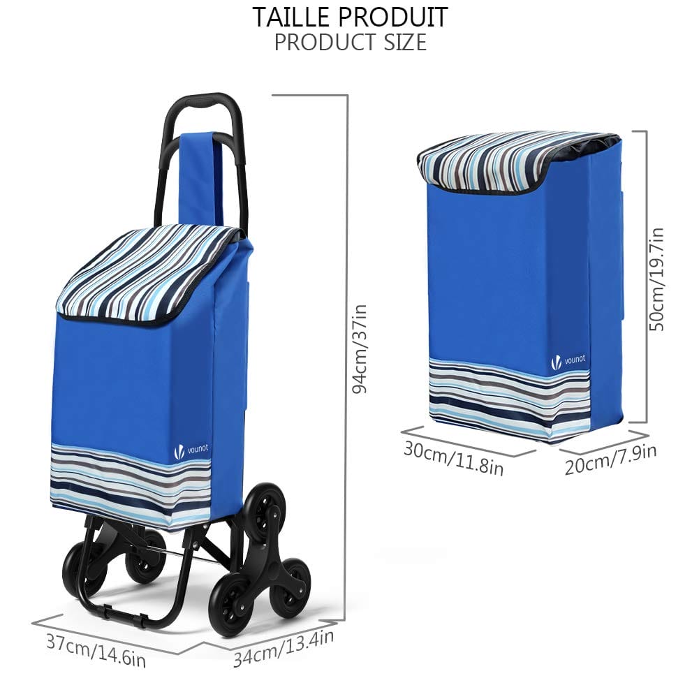 VOUNOT Wózek na zakupy z 3 kołami, wózek do pokonywania schodów, wodoszczelny, 32 l, niebieski